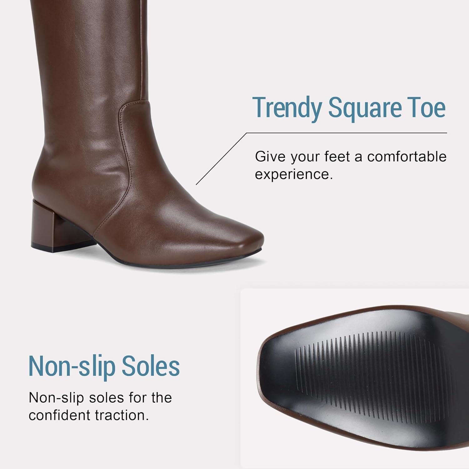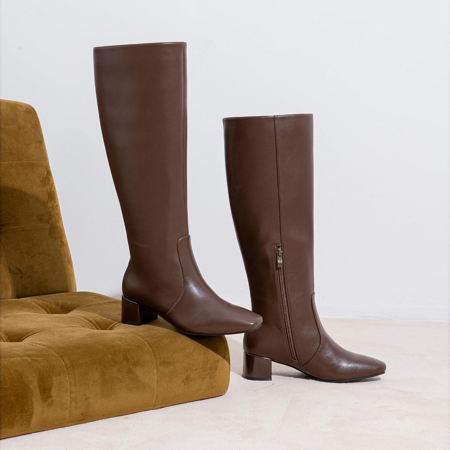 Vepose Knee High Boots for Women, Tall Riding Square Toe 9507 Botas, Women’s Low Chunky Block Heel Boots with Side Zipper(Brown)