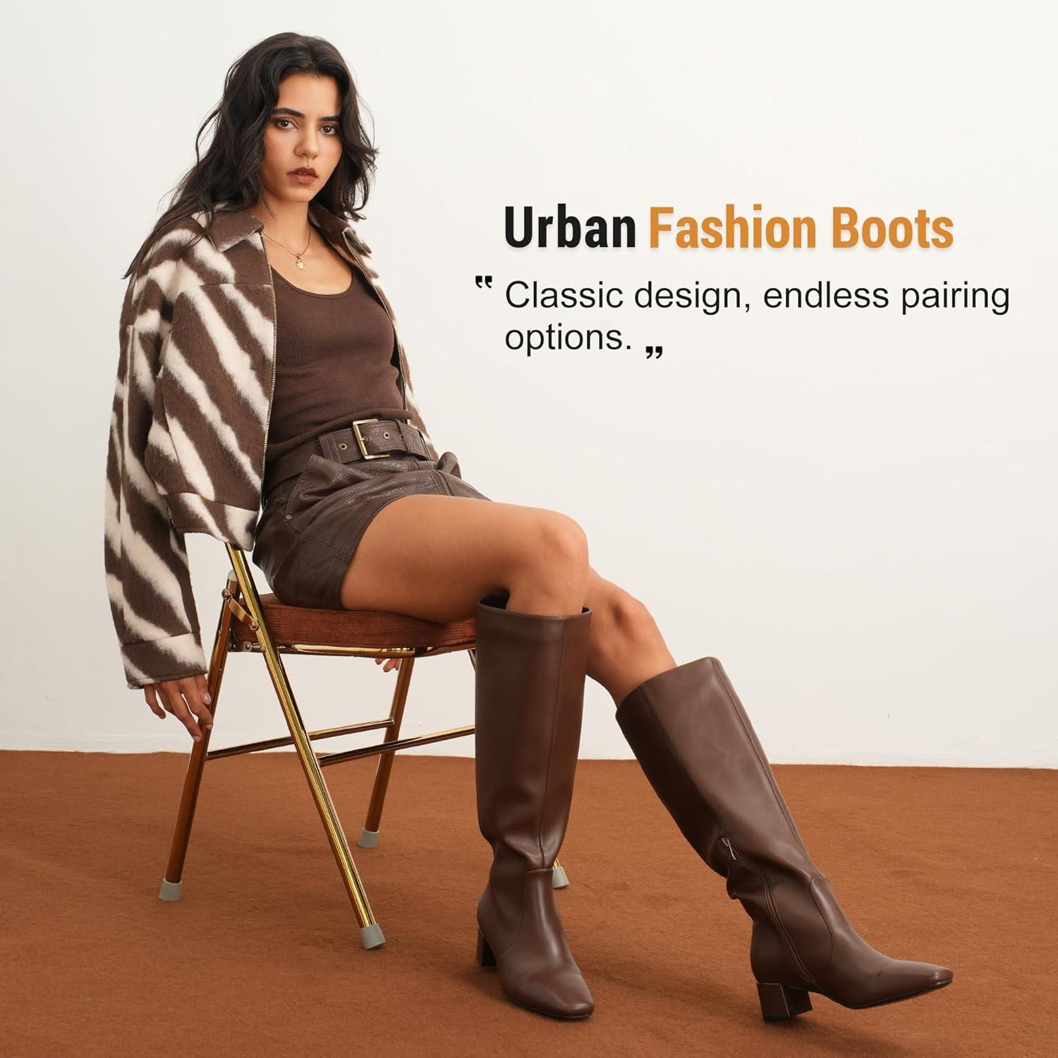 Vepose Knee High Boots for Women, Tall Riding Square Toe 9507 Botas, Women's Low Chunky Block Heel Boots with Side Zipper(Brown)