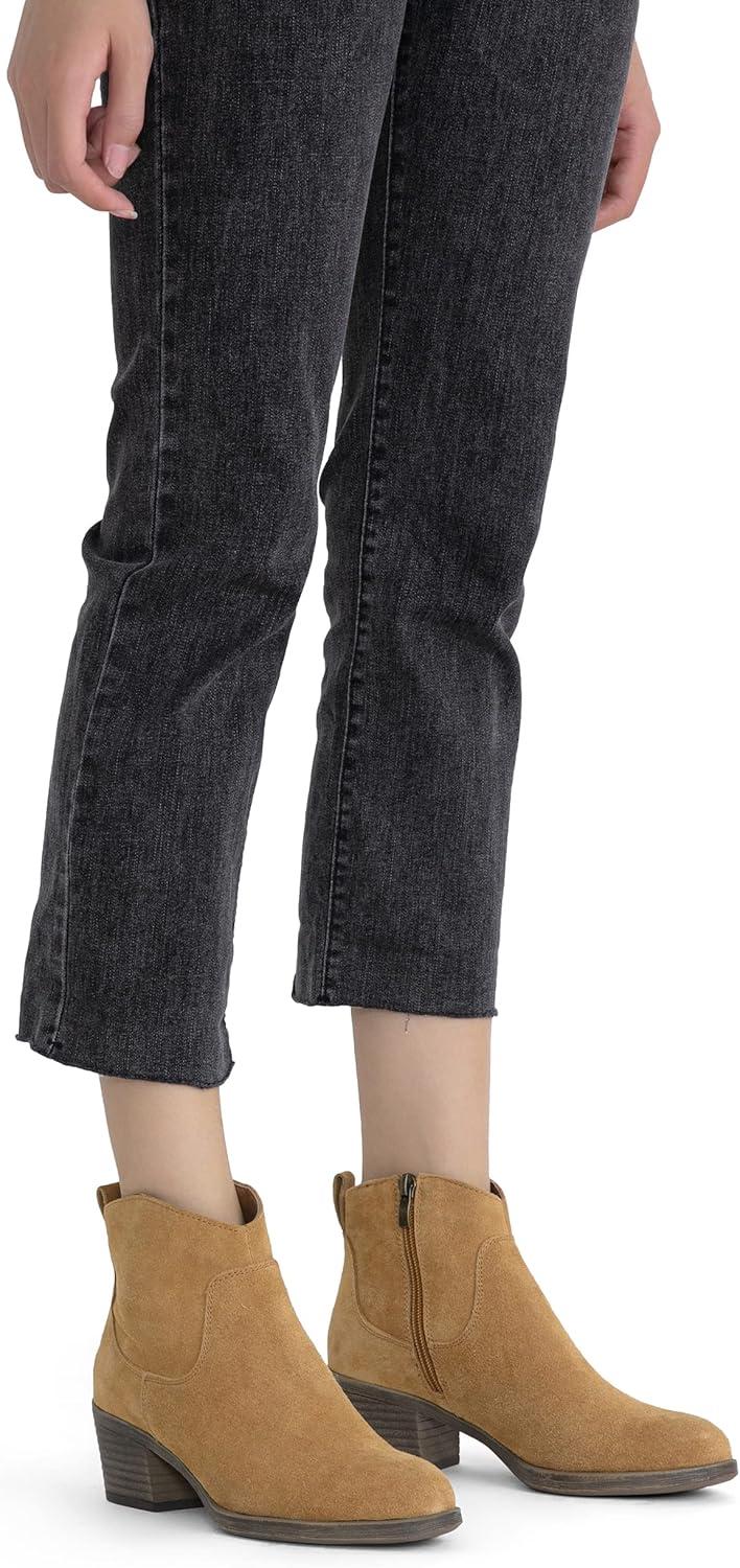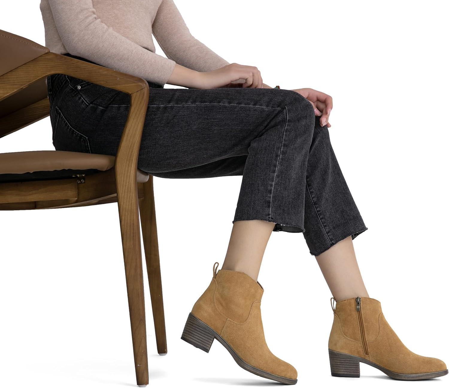 Vepose Women’s 9001 Suede Leather Ankle Boots, Dressy Short Booties with Inner Zipper for Lady(Camel-9001)