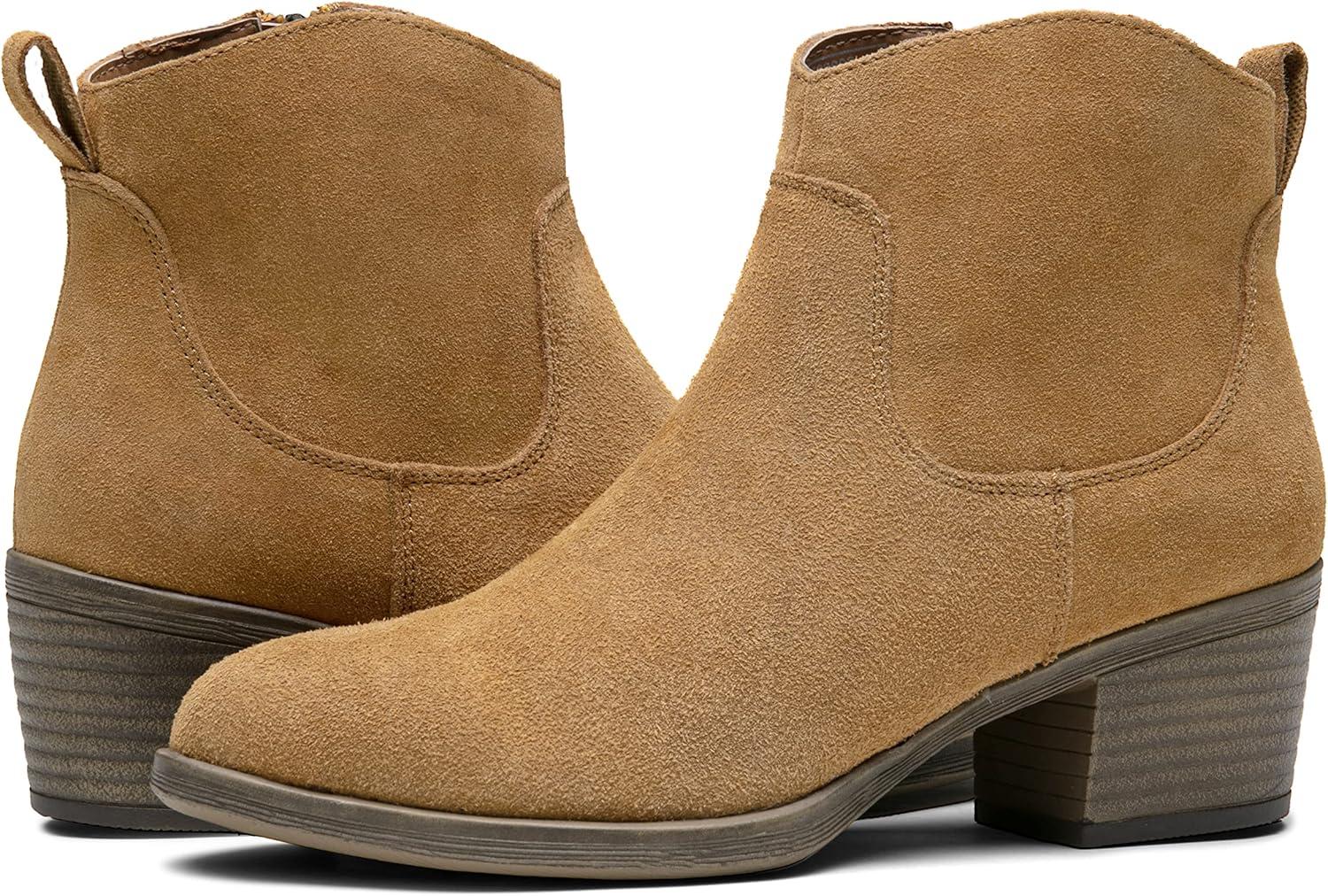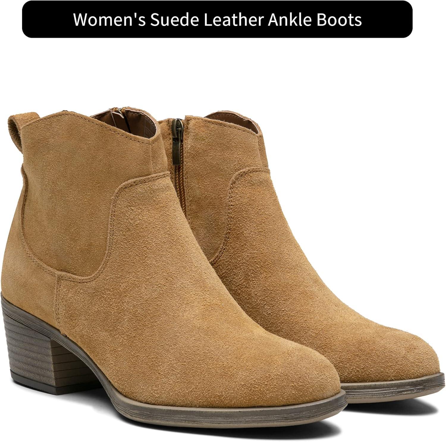 Vepose Women's 9001 Suede Leather Ankle Boots, Dressy Short Booties with Inner Zipper for Lady(Camel-9001)
