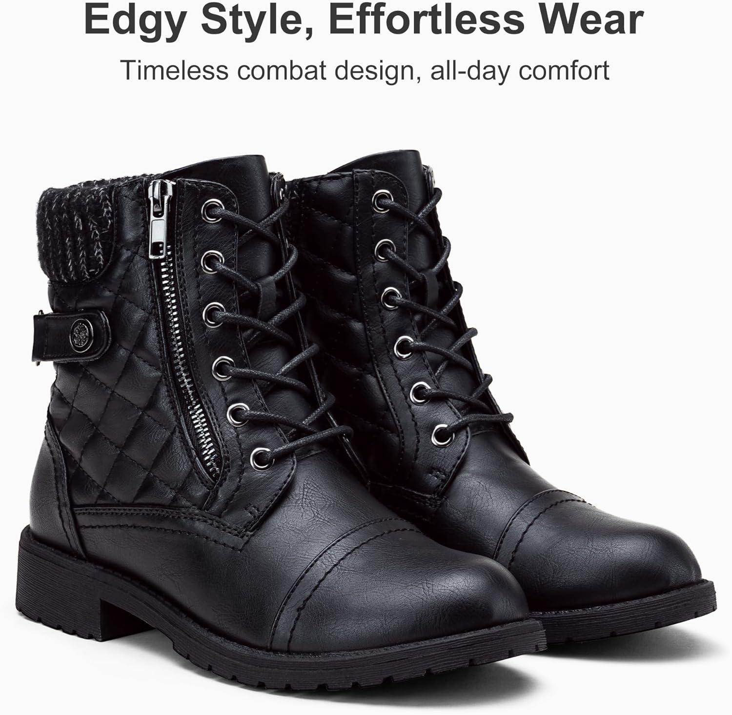 Vepose Women’s 903 Combat Ankle Boots, Lace up Comfortable Booties Low Heel(Black Knitting-927)
