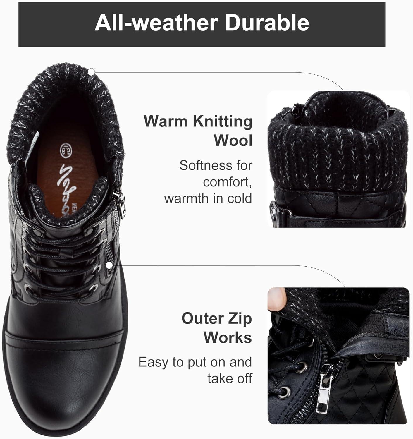 Don’t miss out on our limited-time offer: get a free {accessory} with your purchase of Vepose Women’s 903 Combat Ankle Boots, Lace up Comfortable Booties Low Heel(Black Knitting-927).
