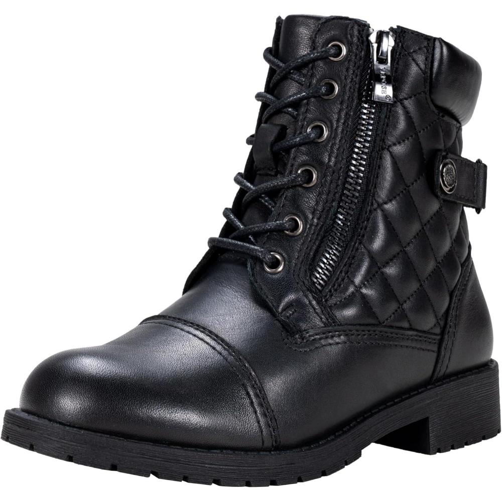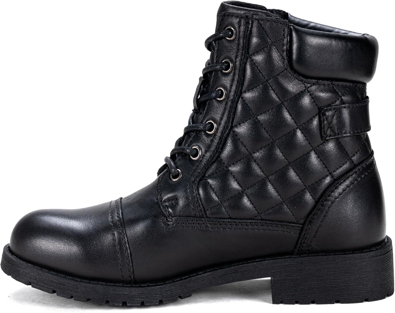 Vepose Women’s 903 Combat Ankle Boots, Lace up Comfortable Booties Low Heel(Black Leather Knitting-927l)