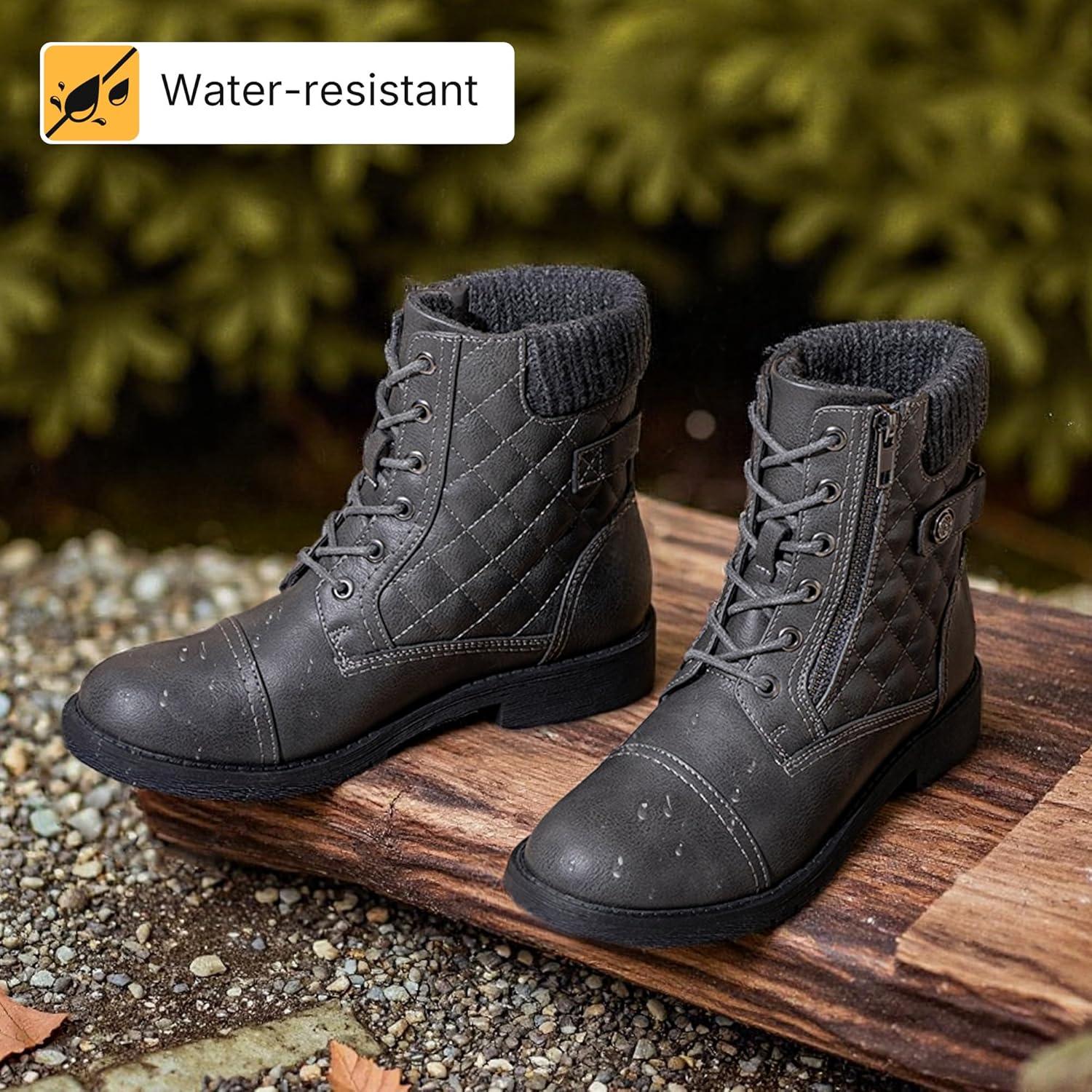 Vepose Women's 903 Combat Ankle Boots, Lace up Comfortable Booties Low Heel(Grey Knitting-927)
