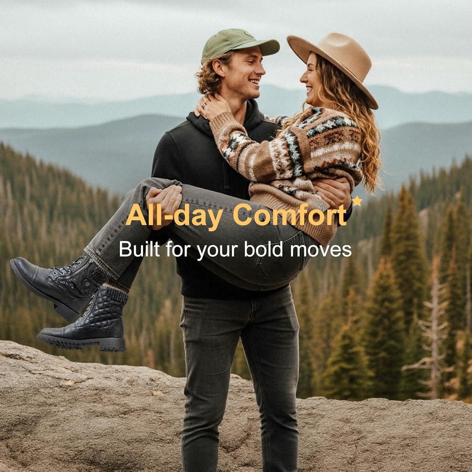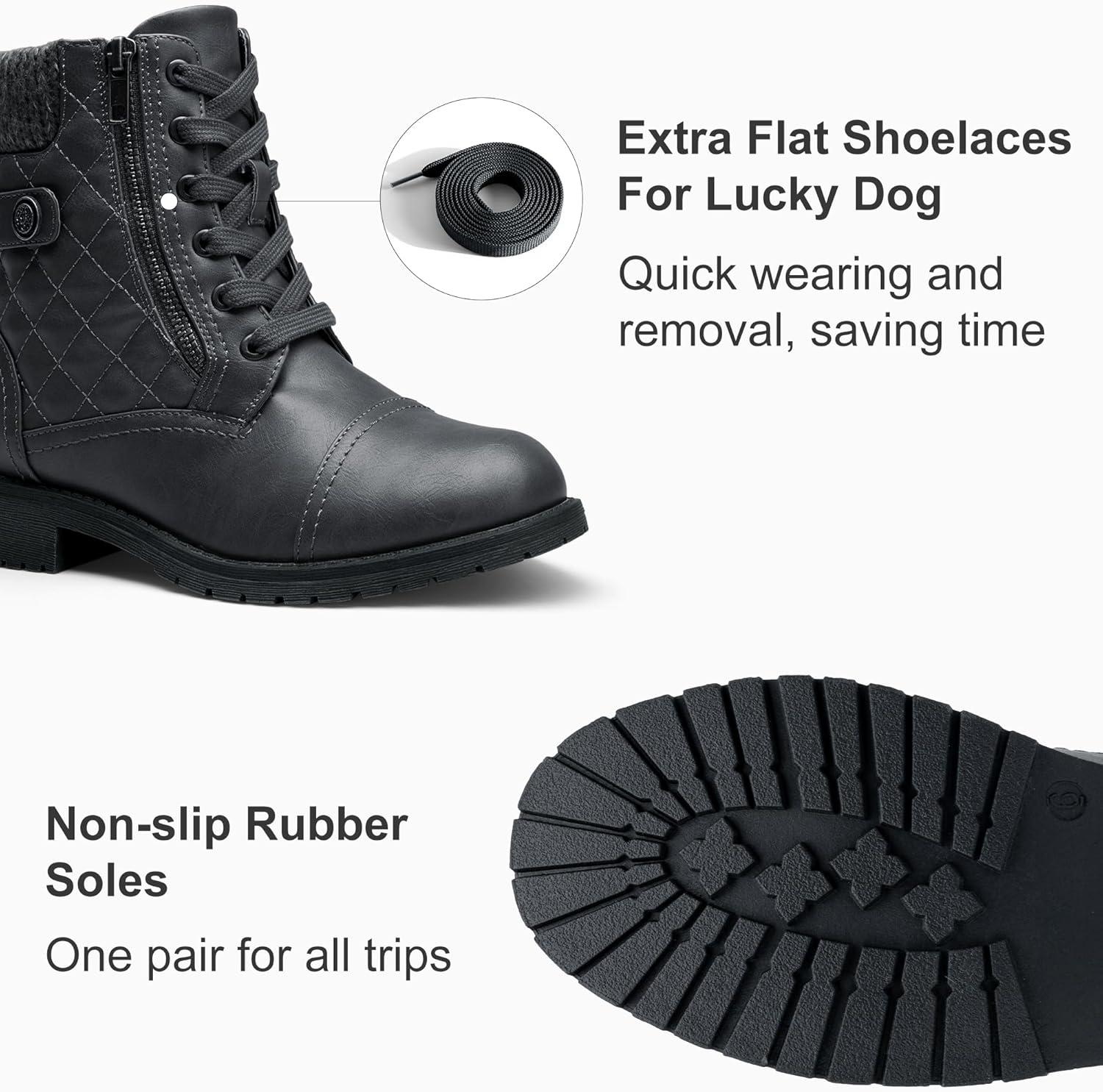 Vepose Women’s 903 Combat Ankle Boots, Lace up Comfortable Booties Low Heel(Black Leather Knitting-927l)