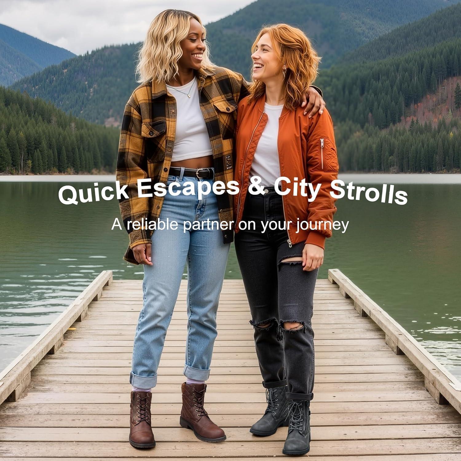 Vepose Women’s 903 Combat Ankle Boots, Lace up Comfortable Booties Low Heel(Dark Brown Pocket-903)