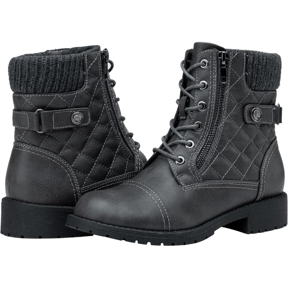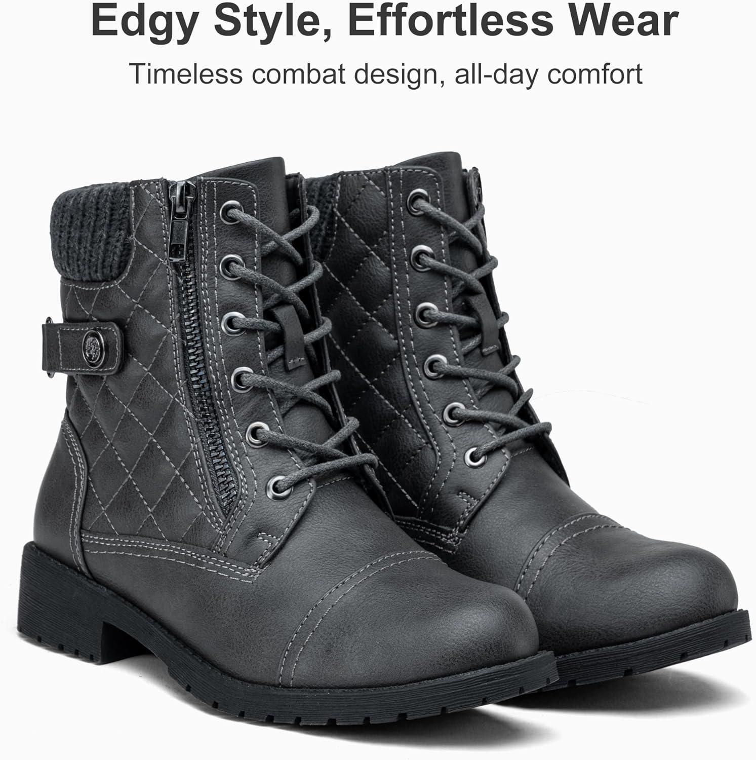 imageVepose Womens 903 Combat Ankle Boots Lace up Comfortable Booties Low HeelGrey Knitting927
