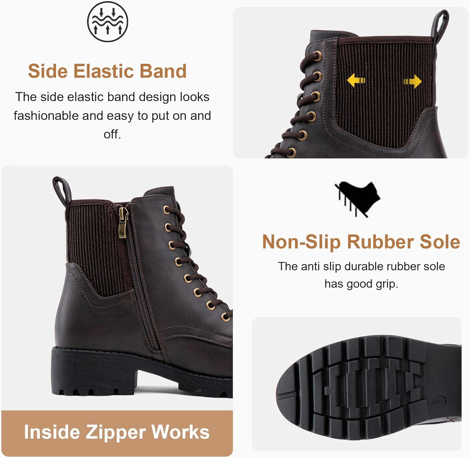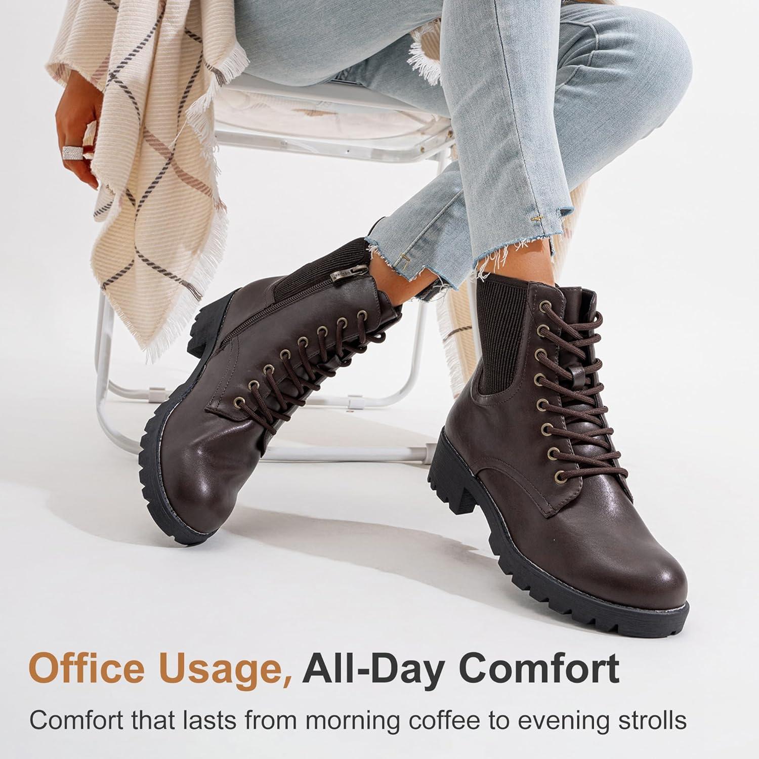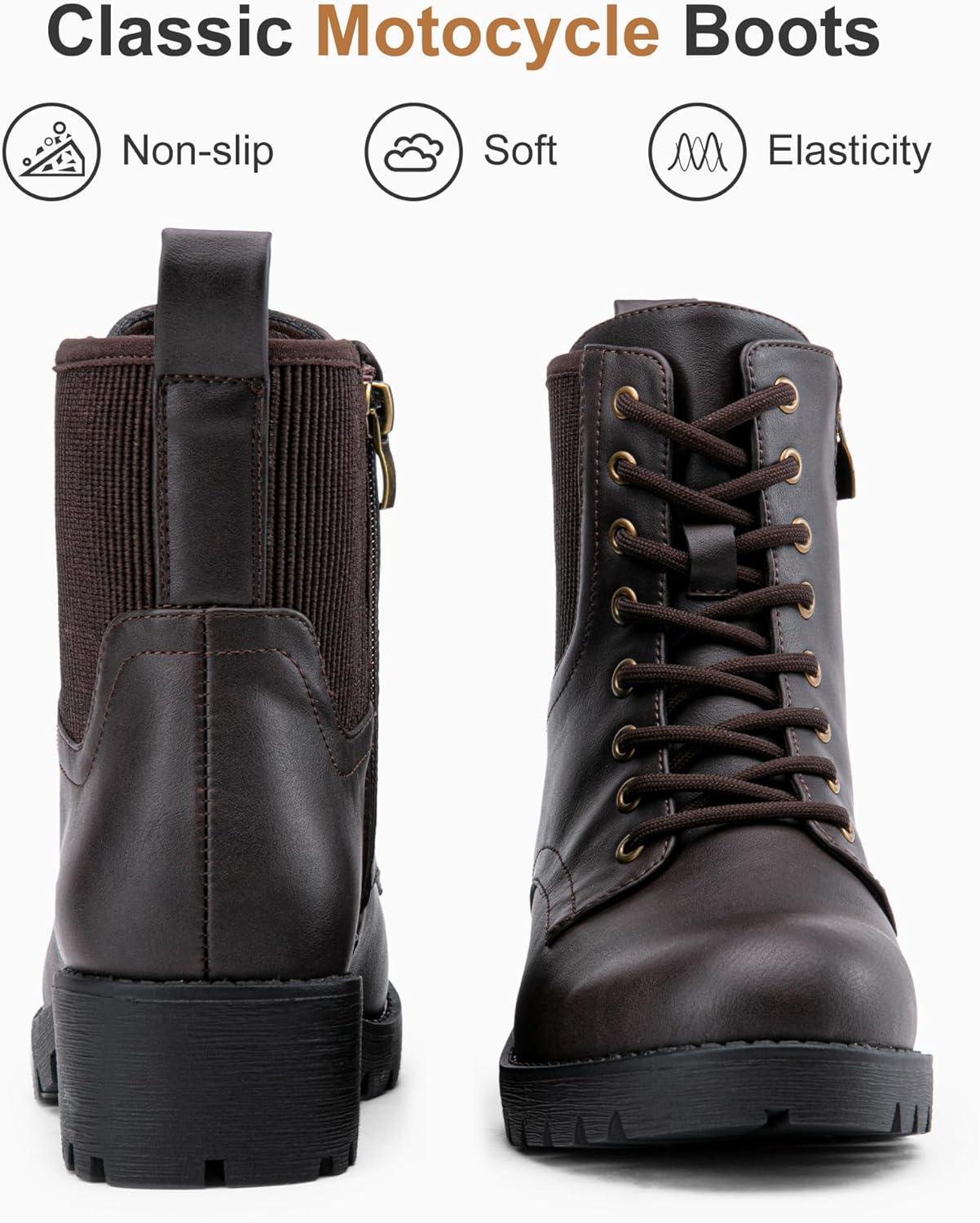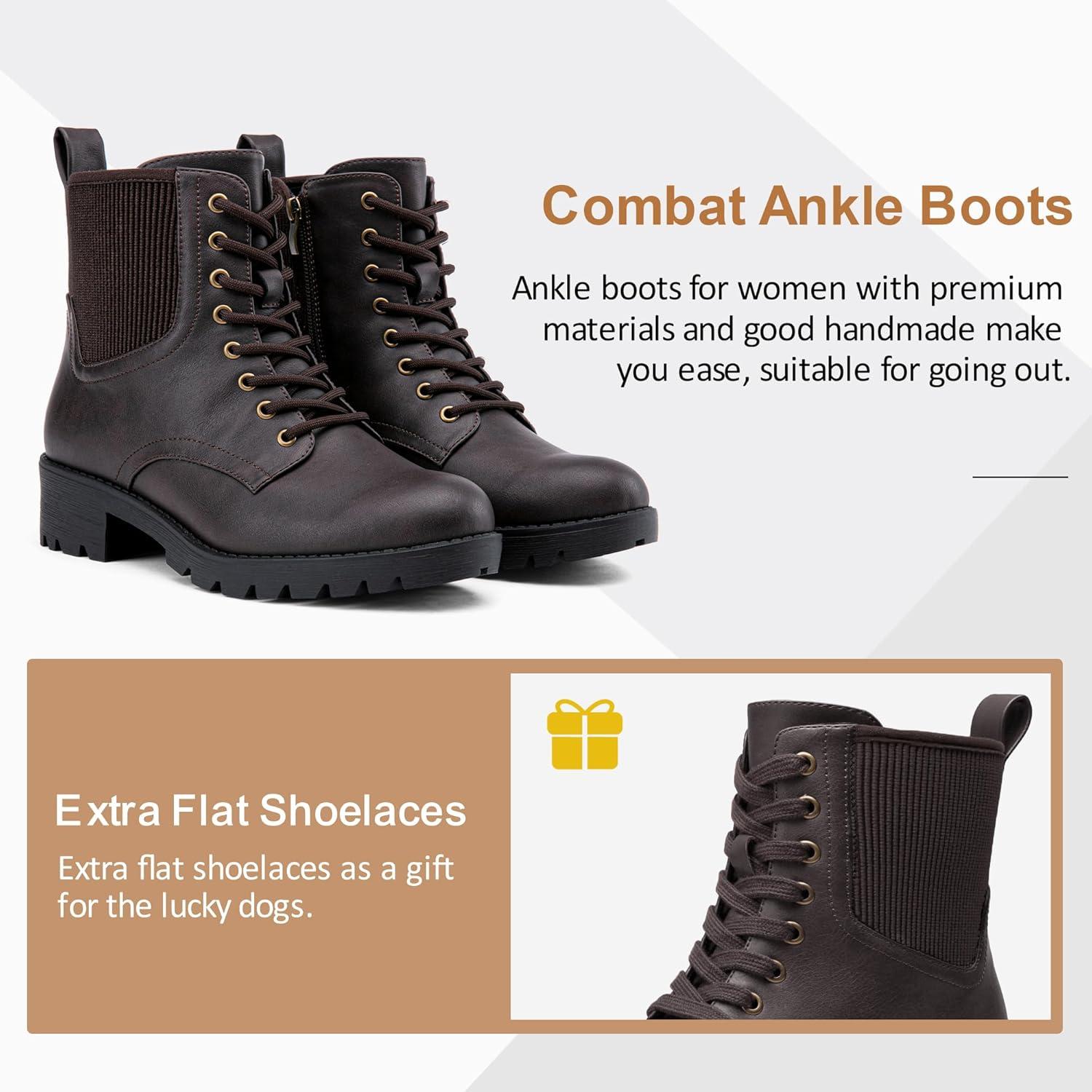 Vepose Women’s 916 Ankle Boots, Combat Lace up Booties with Inside Zipper(Dark Tan)