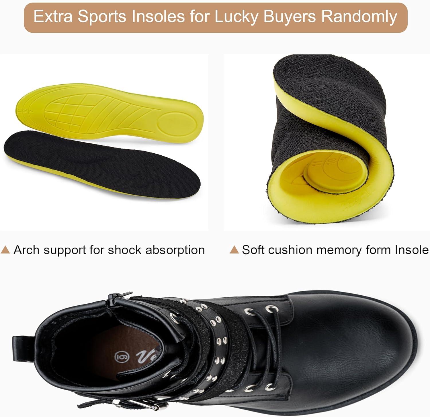 Vepose Women’s 916 Ankle Boots, Combat Lace up Booties with Inside Zipper(Black)