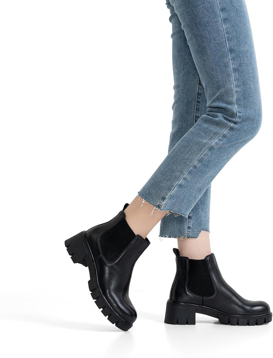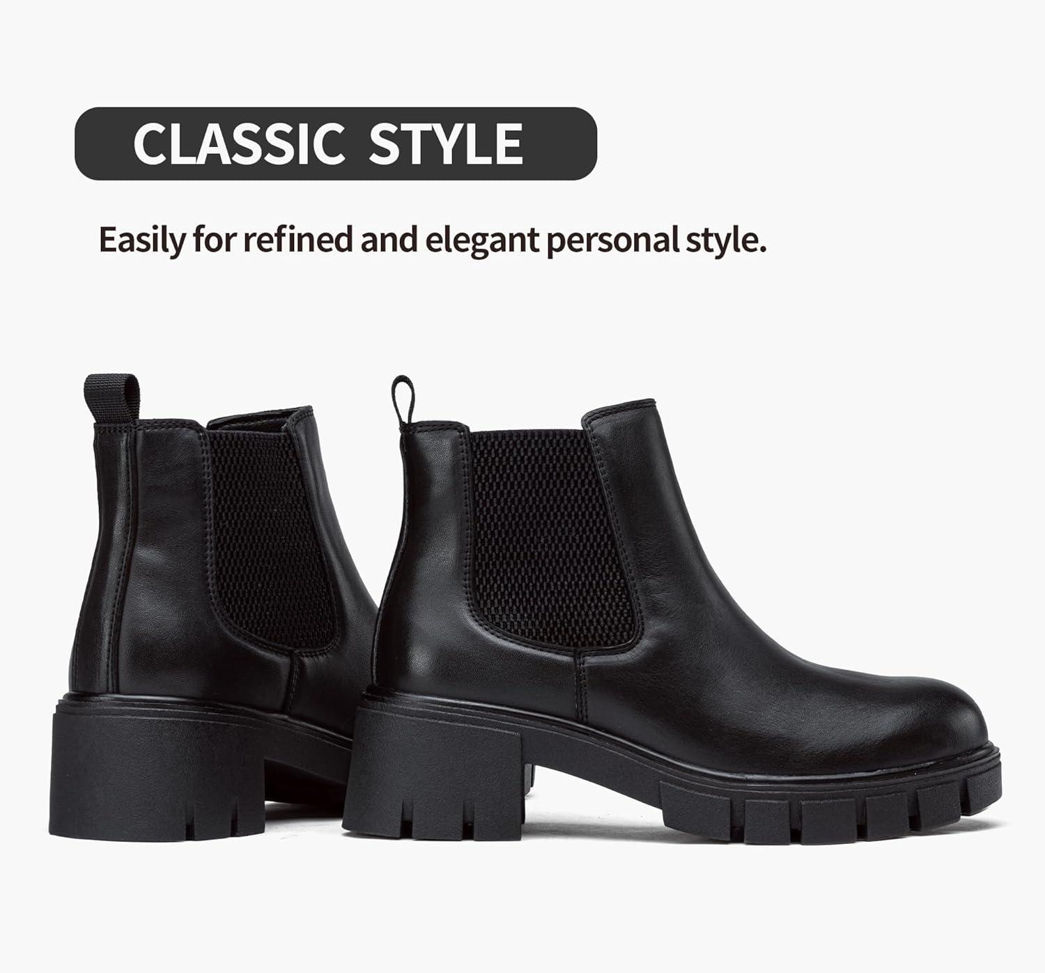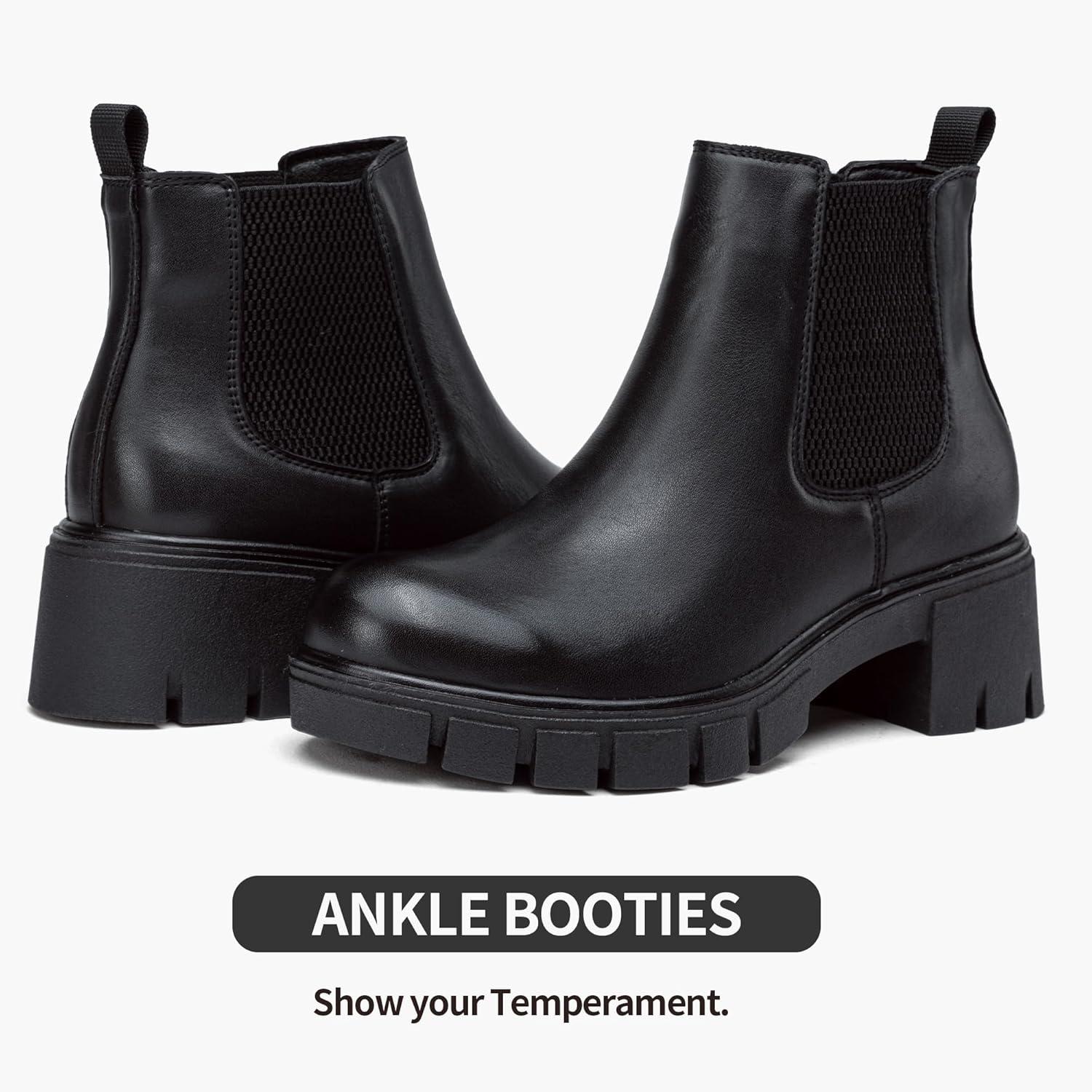 Vepose Women’s 936 Chelsea Ankle Boots Platform Lug Sole Elastic Slip on Booties(Leather Black-classic -936l)