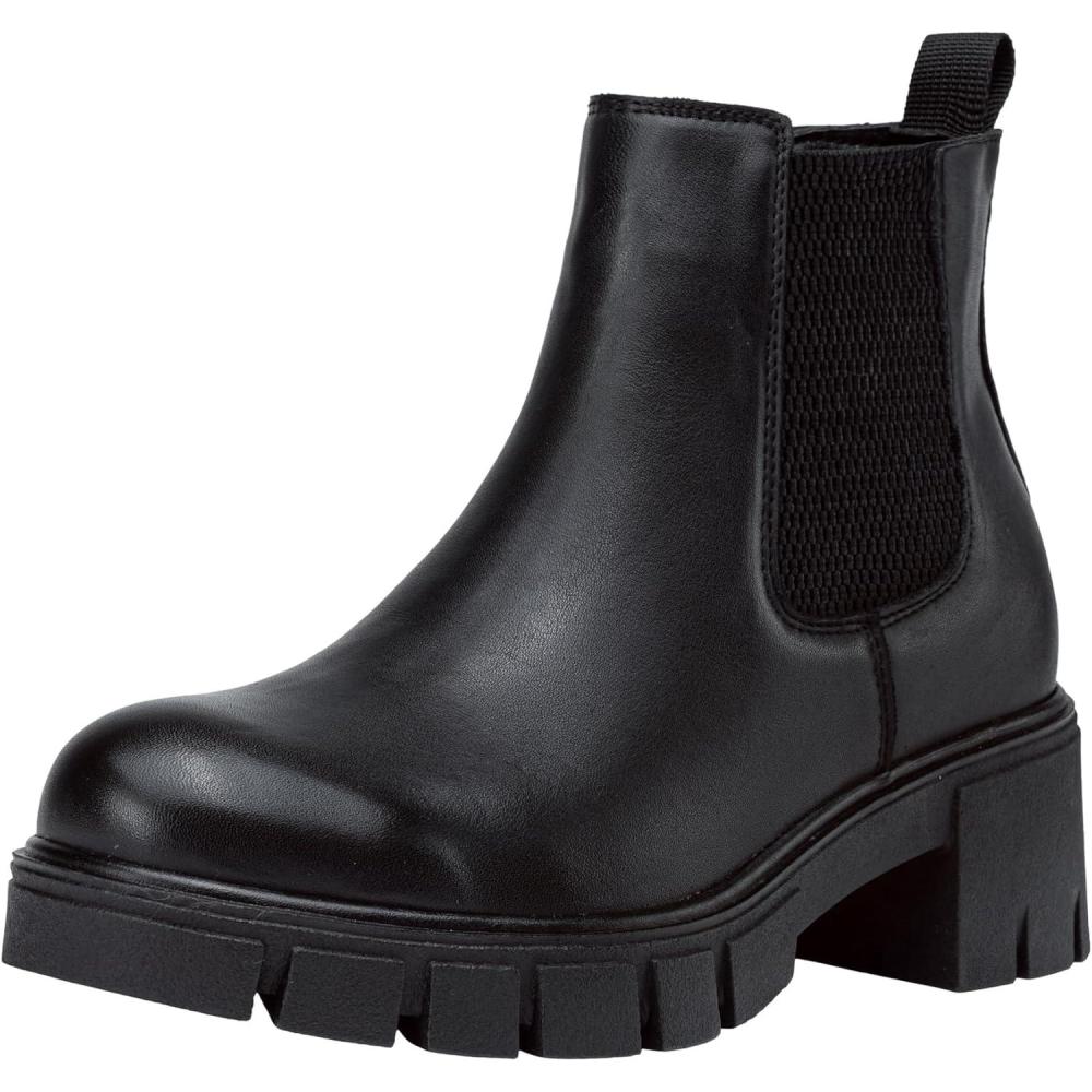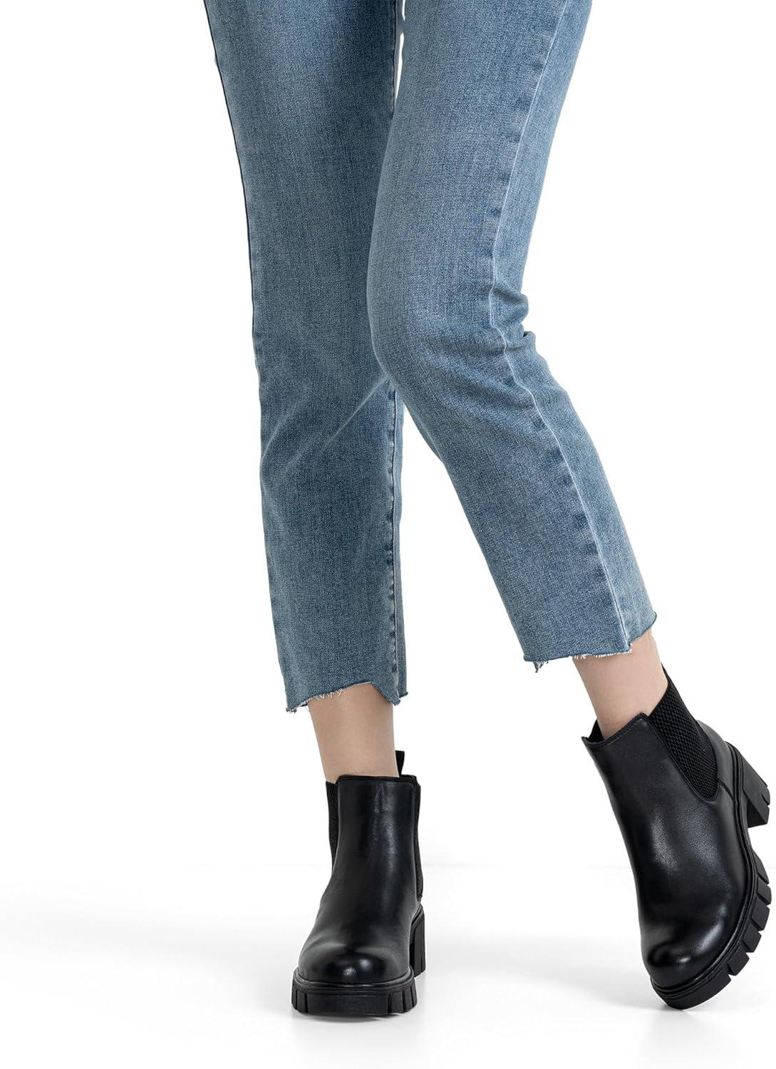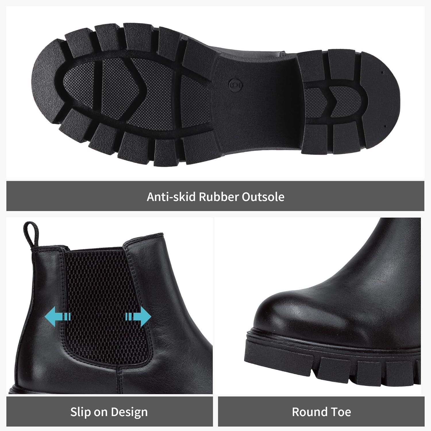 Vepose Women’s 936 Chelsea Ankle Boots Platform Lug Sole Elastic Slip on Booties(Leather Black-classic -936l)