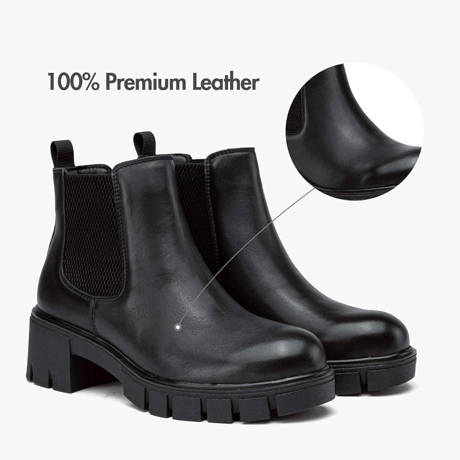 imageVepose Womens 936 Chelsea Ankle Boots Platform Lug Sole Elastic Slip on BootiesLeather Blackclassic 936l