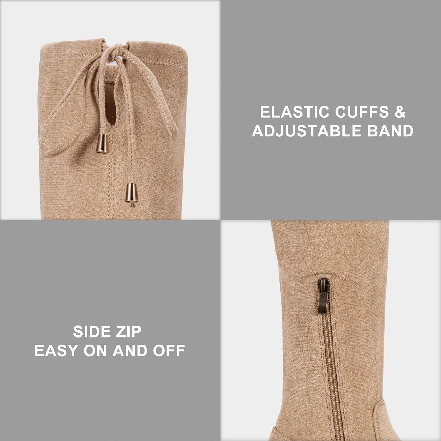 Vepose Women’s 998 Suede Over The Knee High Boots Low Flat Heel Thigh High Boots for Women(Sand-knee High-998)