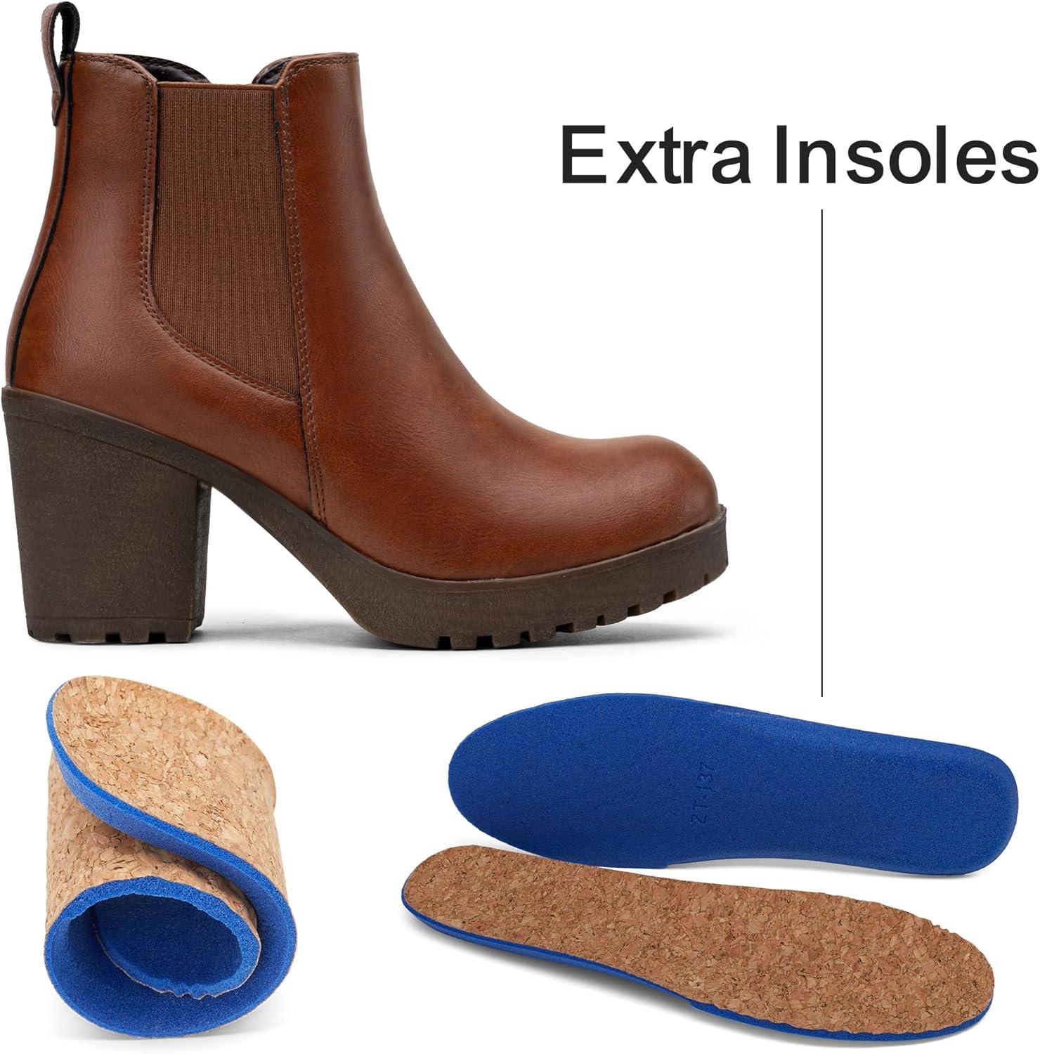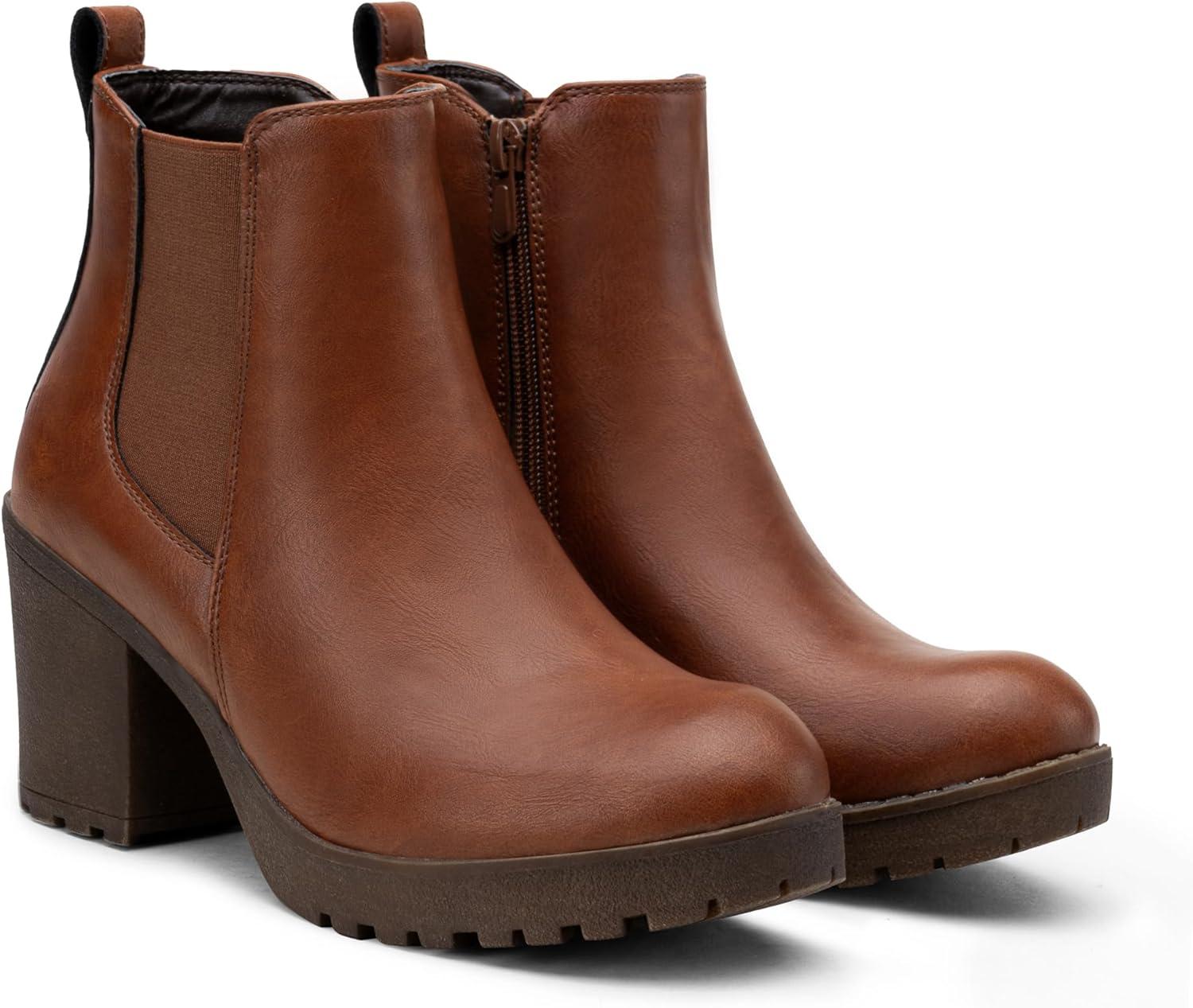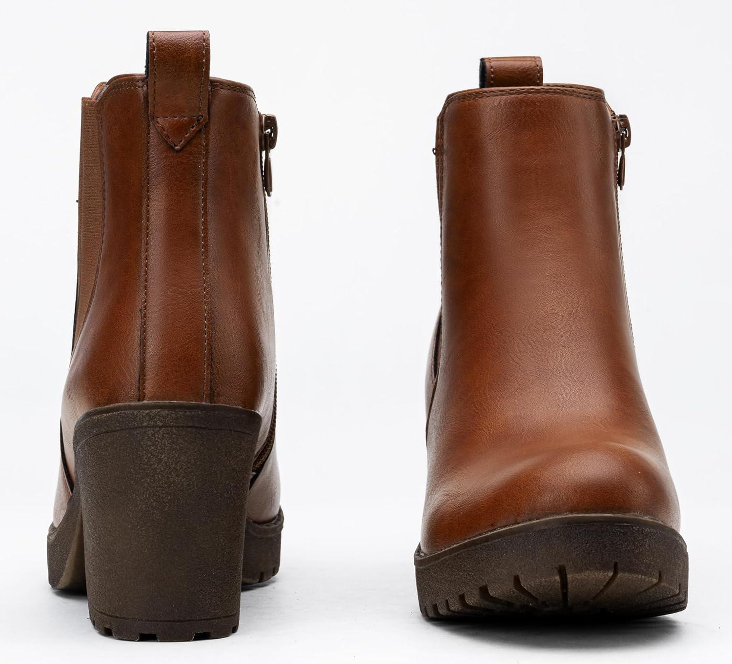 imageVepose Womens Ankle Chunky Heeled Boots Platform Chelsea Retro Short 999 Booties with ZipperCognac