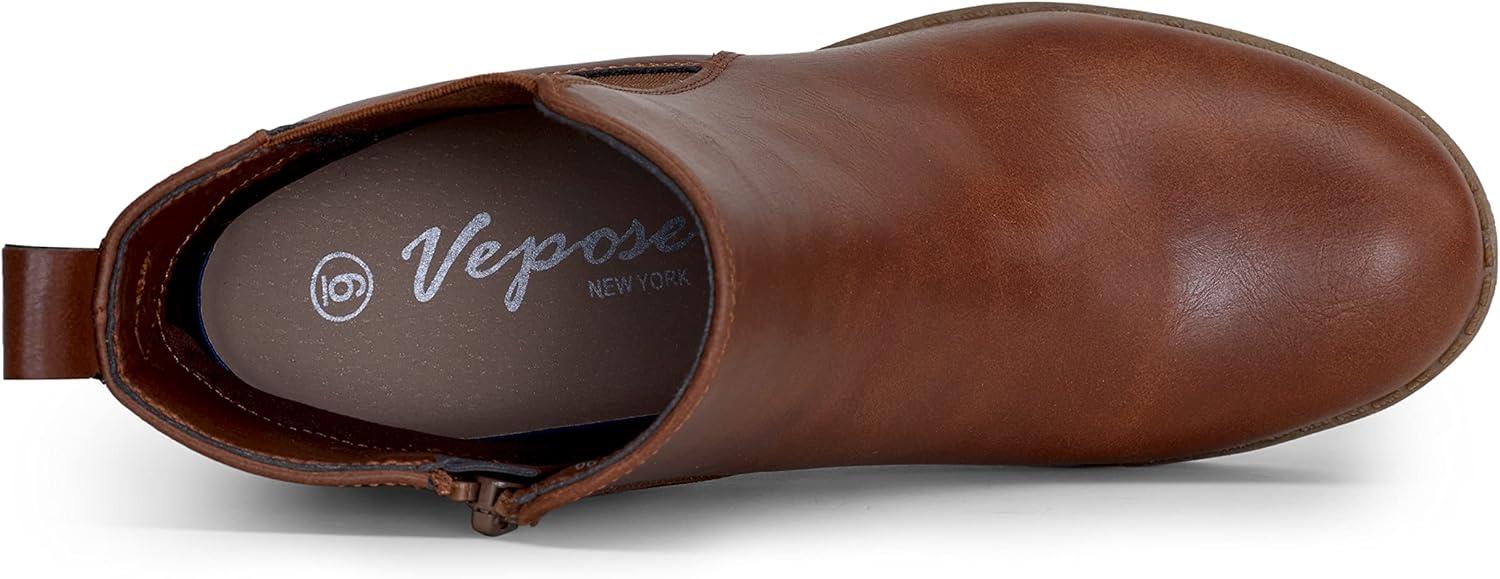 Vepose Women’s Ankle Chunky Heeled Boots Platform Chelsea Retro Short 999 Booties with Zipper(Cognac)