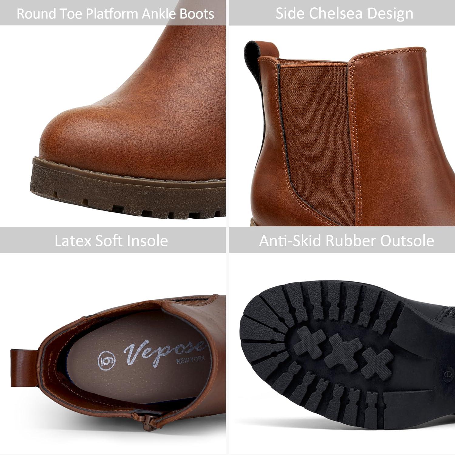 Vepose Women’s Ankle Chunky Heeled Boots Platform Chelsea Retro Short 999 Booties with Zipper(Brown)