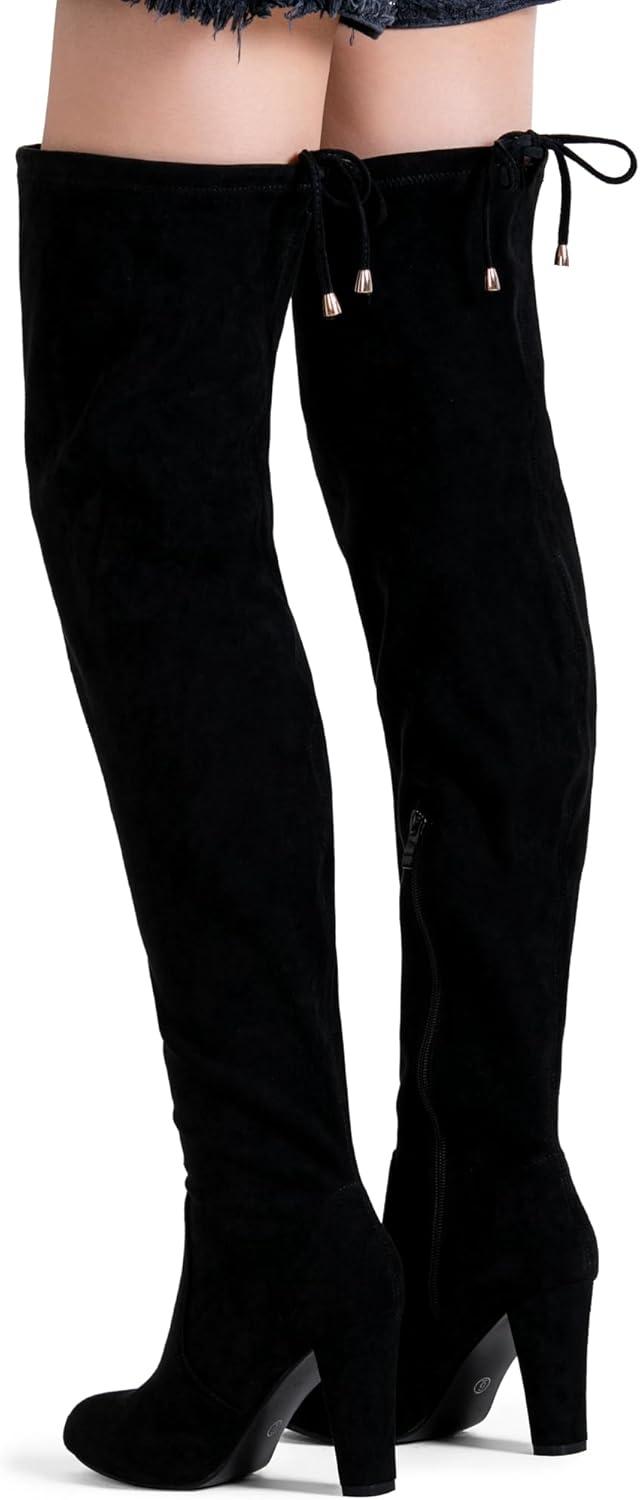 Vepose Women's Aria Thigh High Over The Knee Boots, Cute Suede Long Boots with High Heel and Inner Zipper(Black Suede)