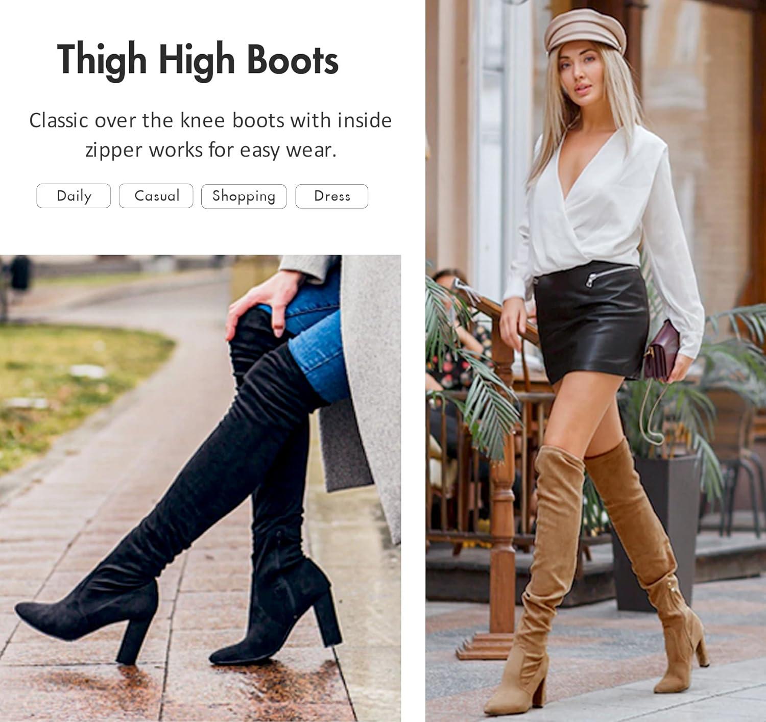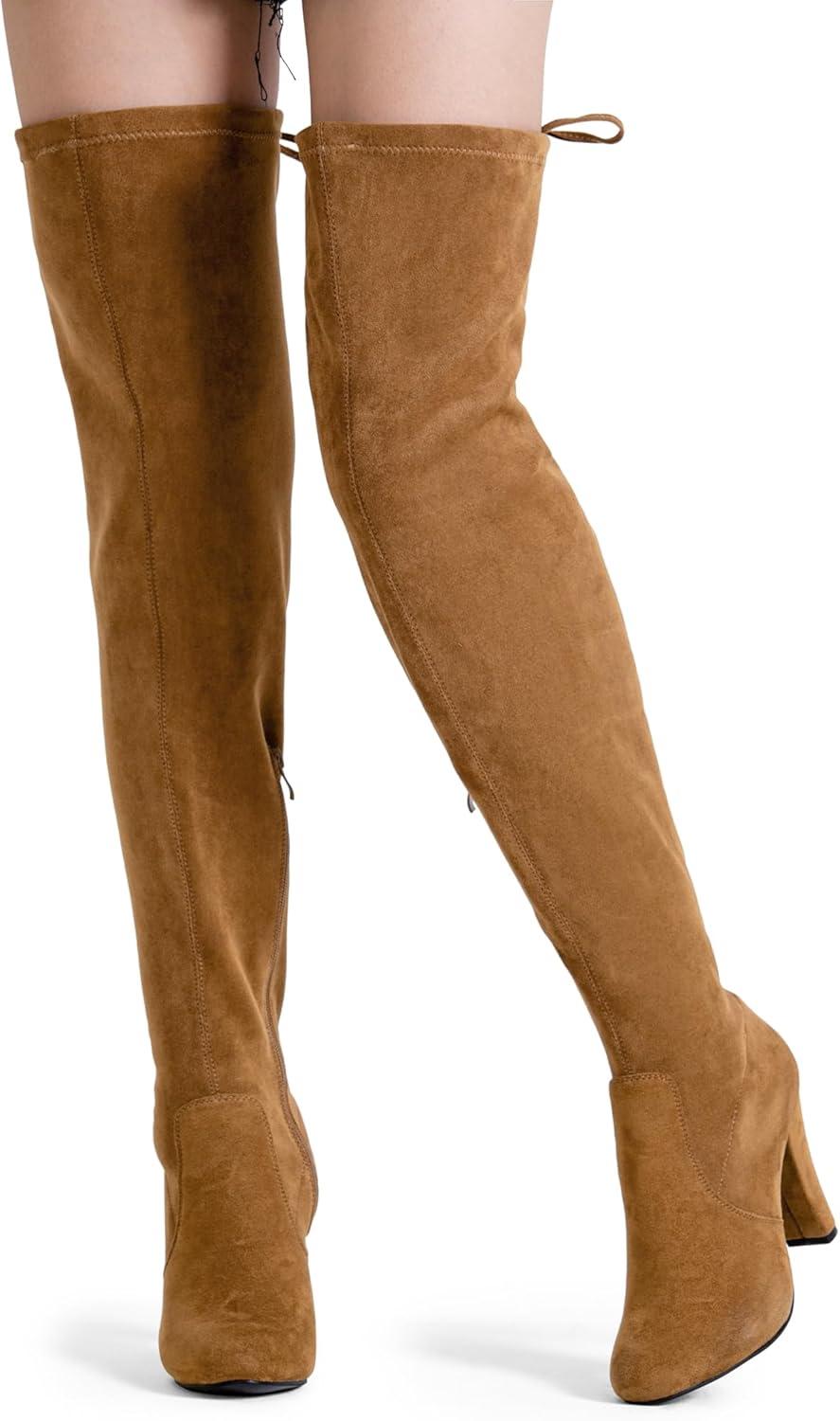 Vepose Women’s Aria Thigh High Over The Knee Boots, Cute Suede Long Boots with High Heel and Inner Zipper(Camel Brown Suede)
