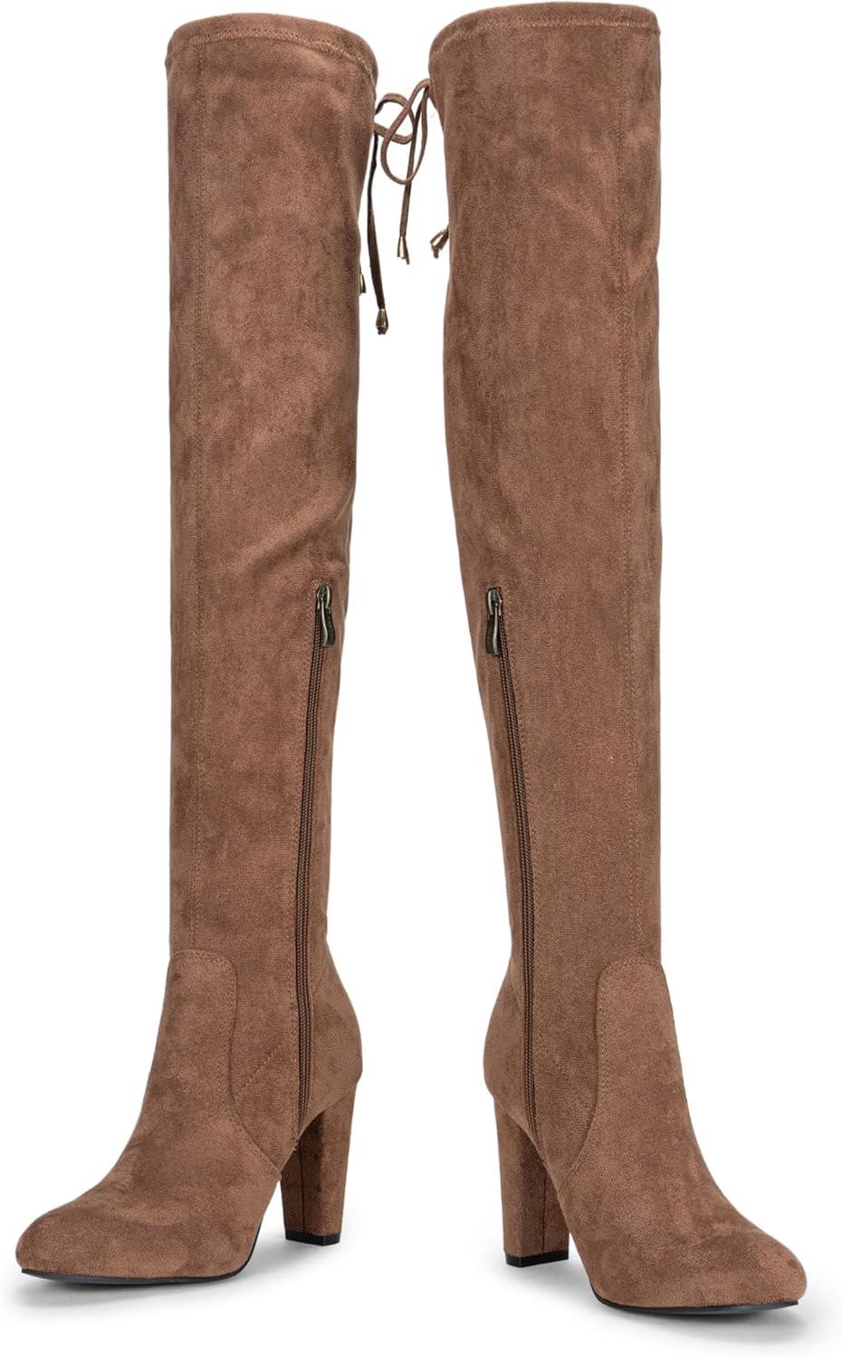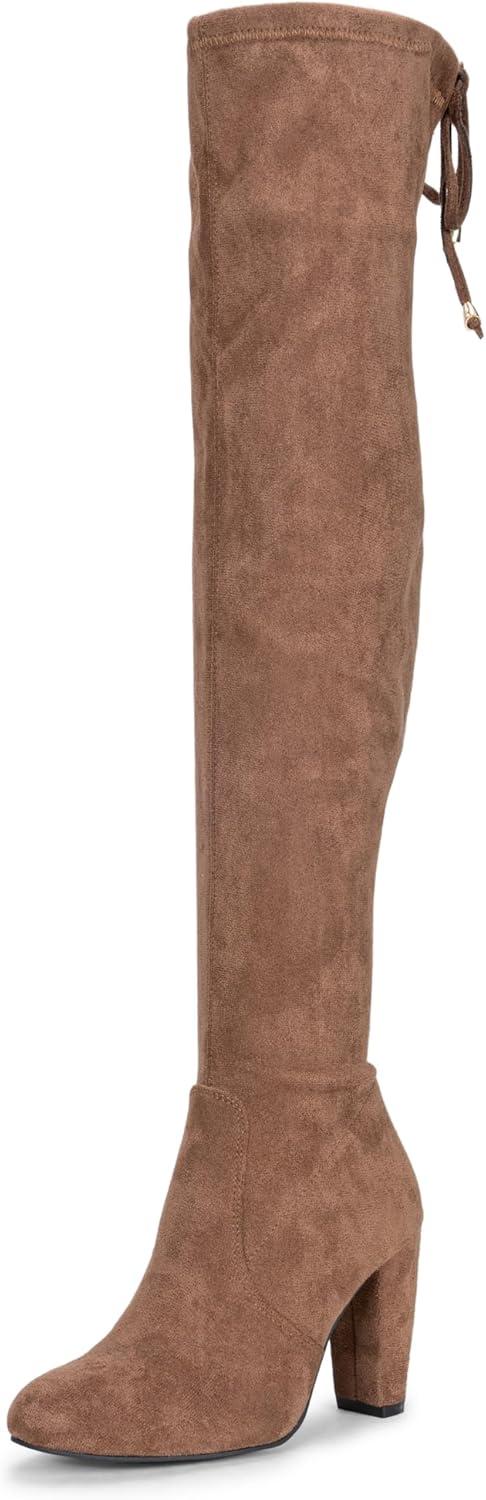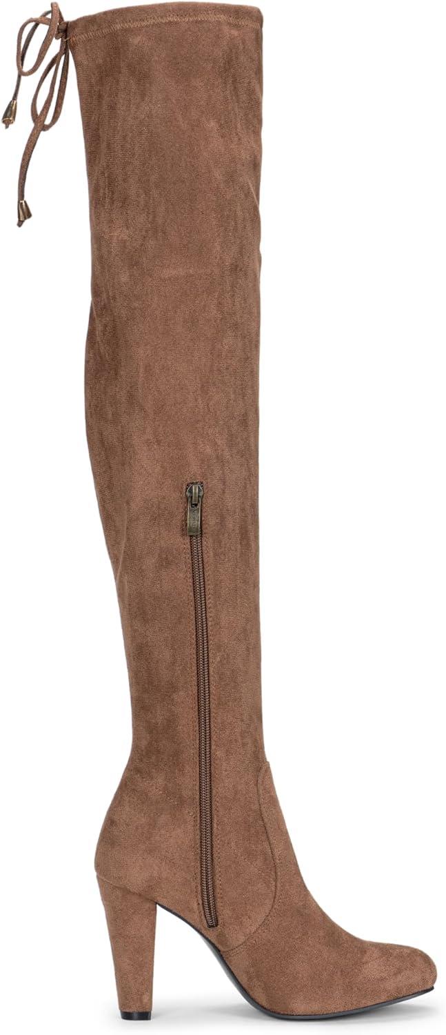 Vepose Women's Aria Thigh High Over The Knee Boots, Cute Suede Long Boots with High Heel and Inner Zipper(Mocha Toffee Suede)