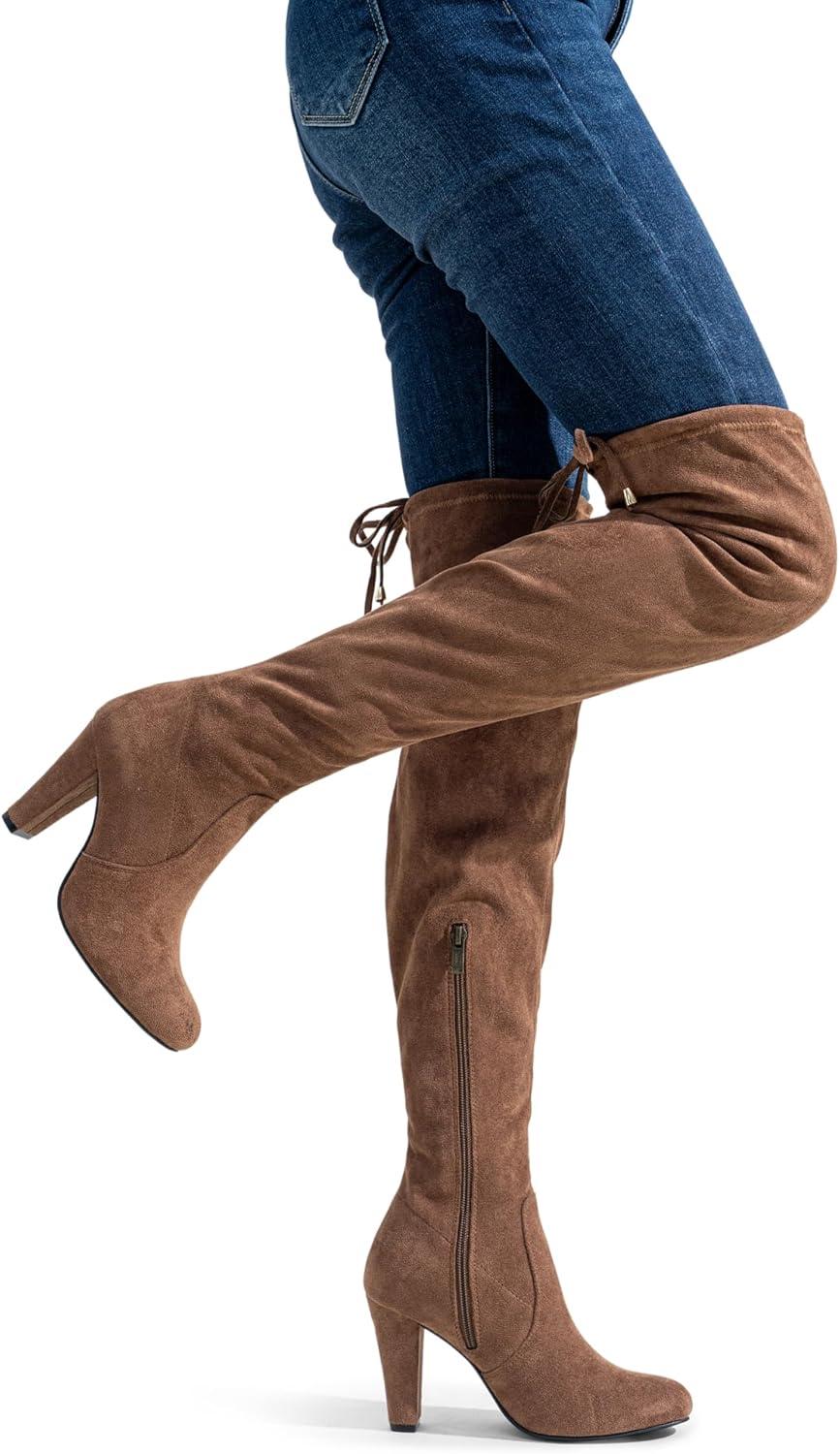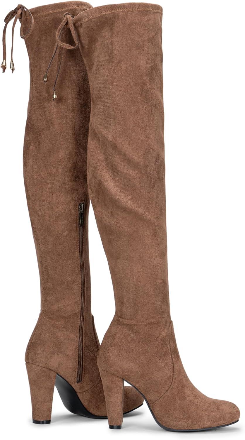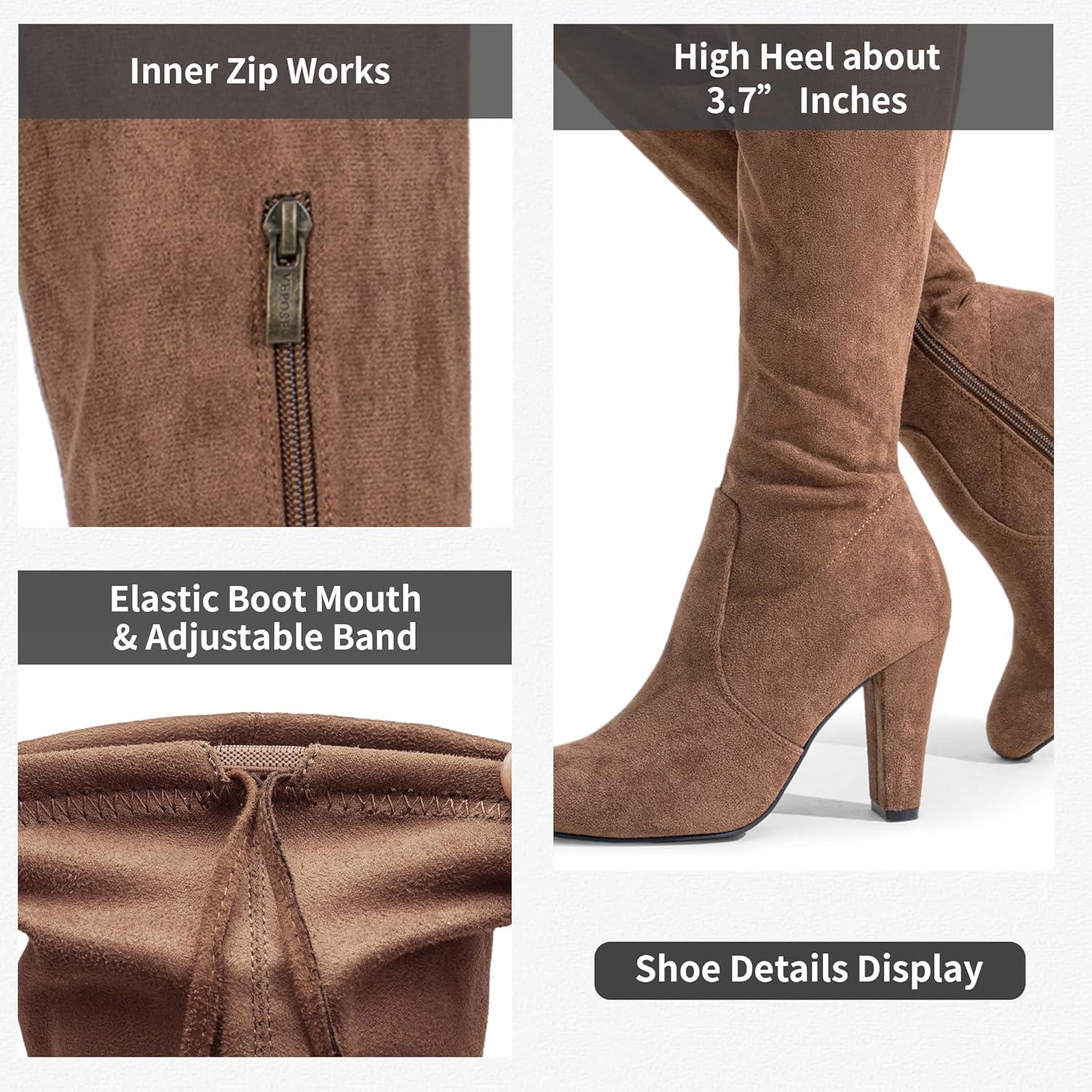 Vepose Women’s Aria Thigh High Over The Knee Boots, Cute Suede Long Boots with High Heel and Inner Zipper(Mocha Brown)