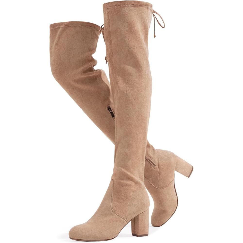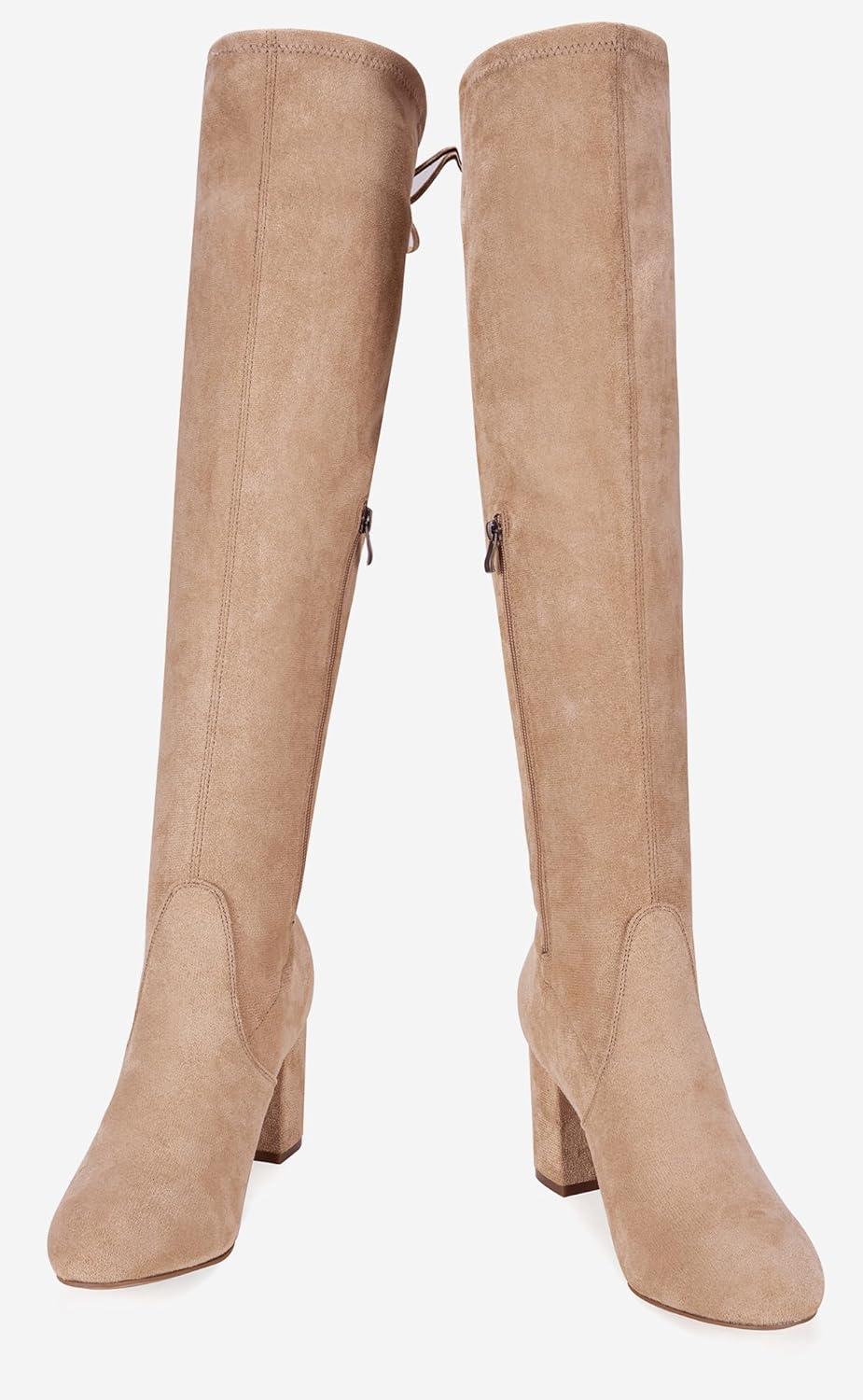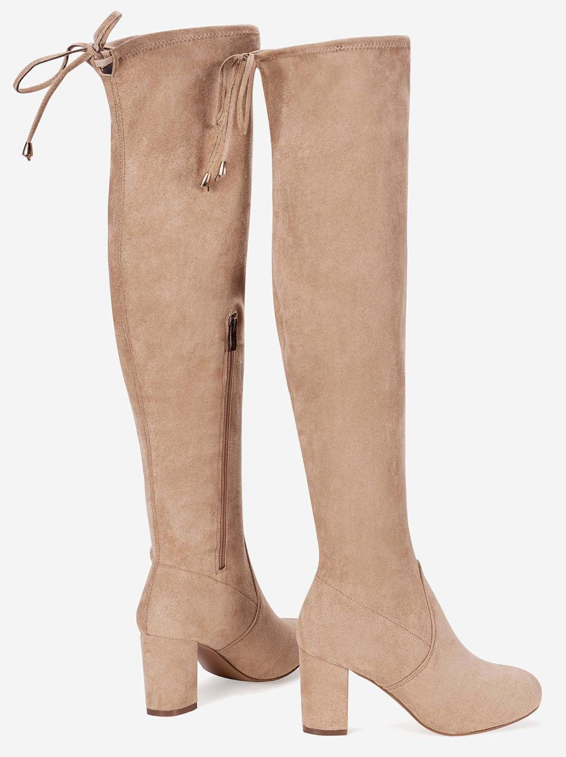 Vepose Women's Aria Thigh High Over The Knee Boots, Cute Suede Long Boots with High Heel and Inner Zipper(Sand)