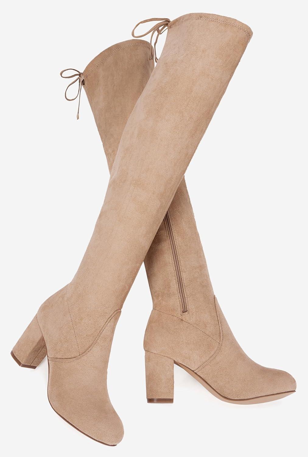 imageVepose Womens Aria Thigh High Over The Knee Boots Cute Suede Long Boots with High Heel and Inner ZipperSand