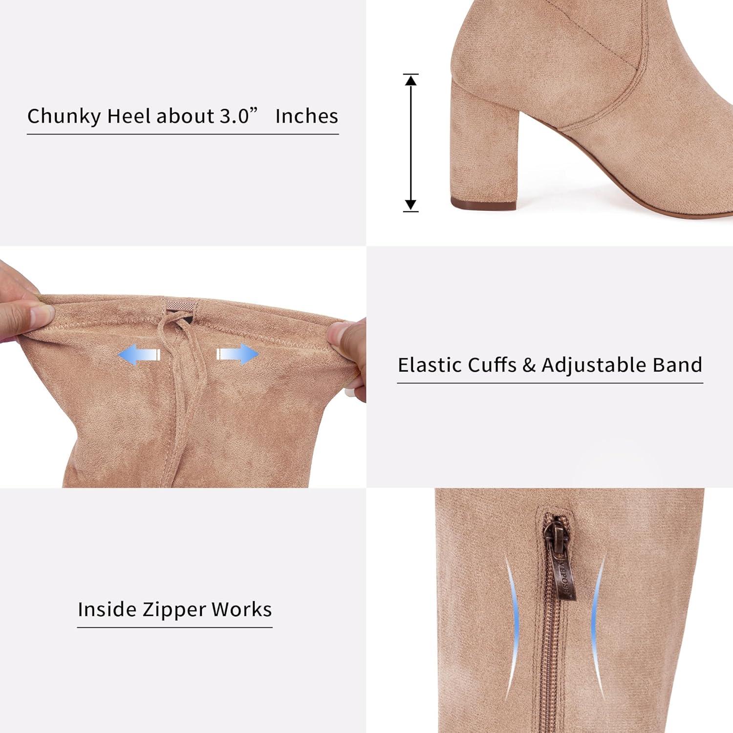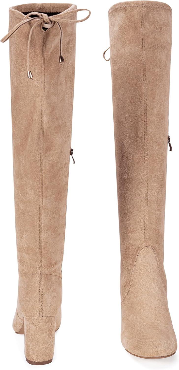 Vepose Women’s Aria Thigh High Over The Knee Boots, Cute Suede Long Boots with High Heel and Inner Zipper(Sand)