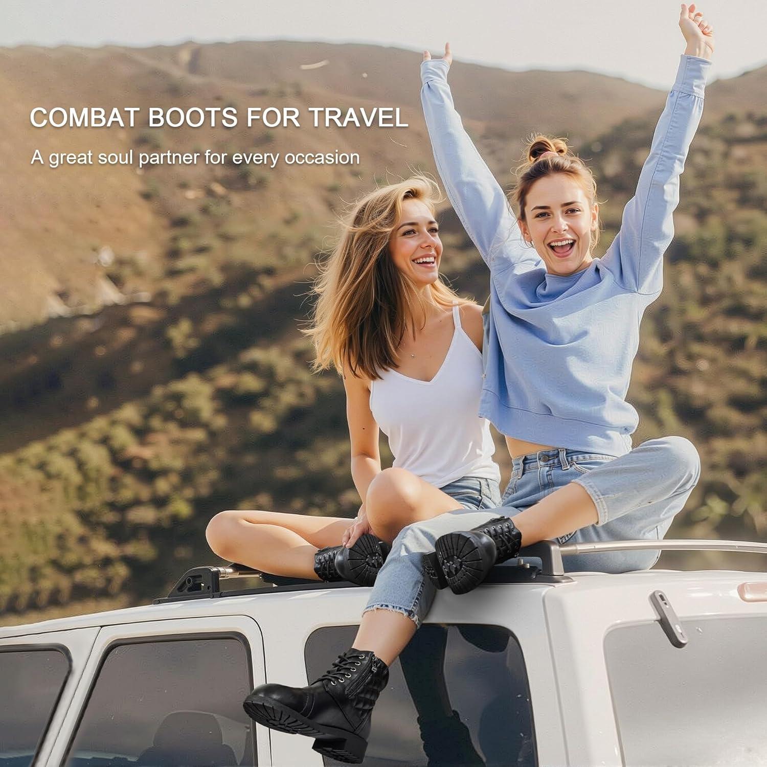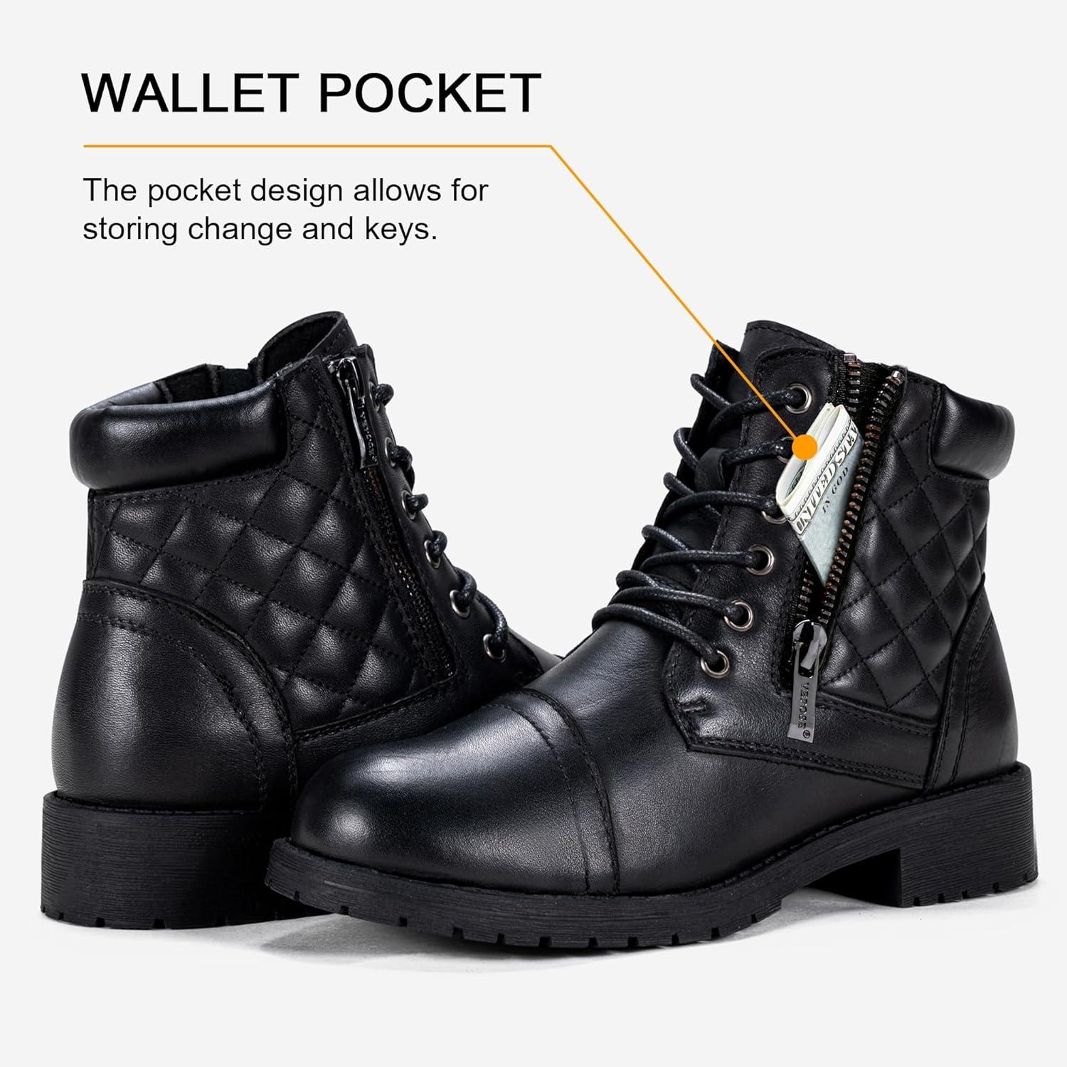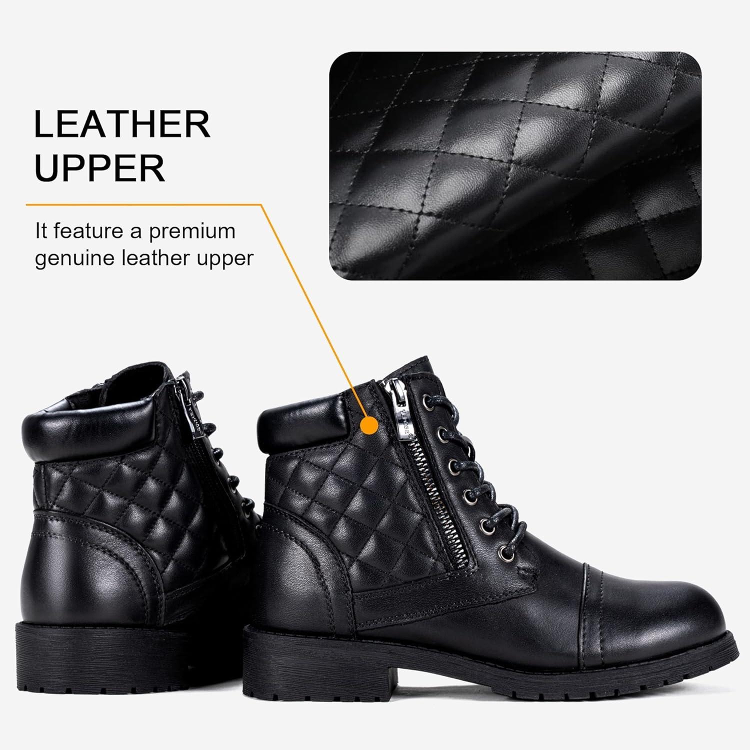 Vepose Women’s Combat Ankle Boots, Lace up Comfortable Booties Low Heel(Black Leather Pocket-903l)