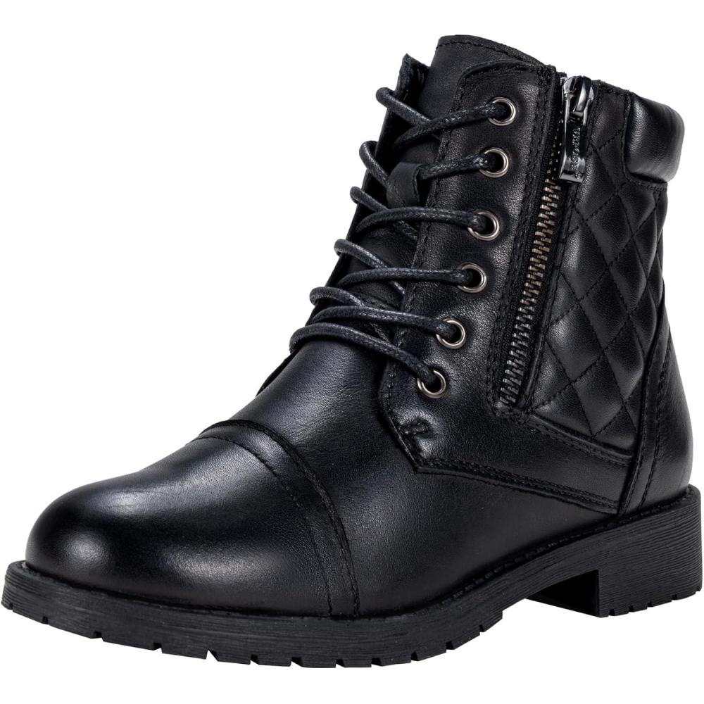 imageVepose Womens Combat Ankle Boots Lace up Comfortable Booties Low HeelBlack Leather Pocket903l