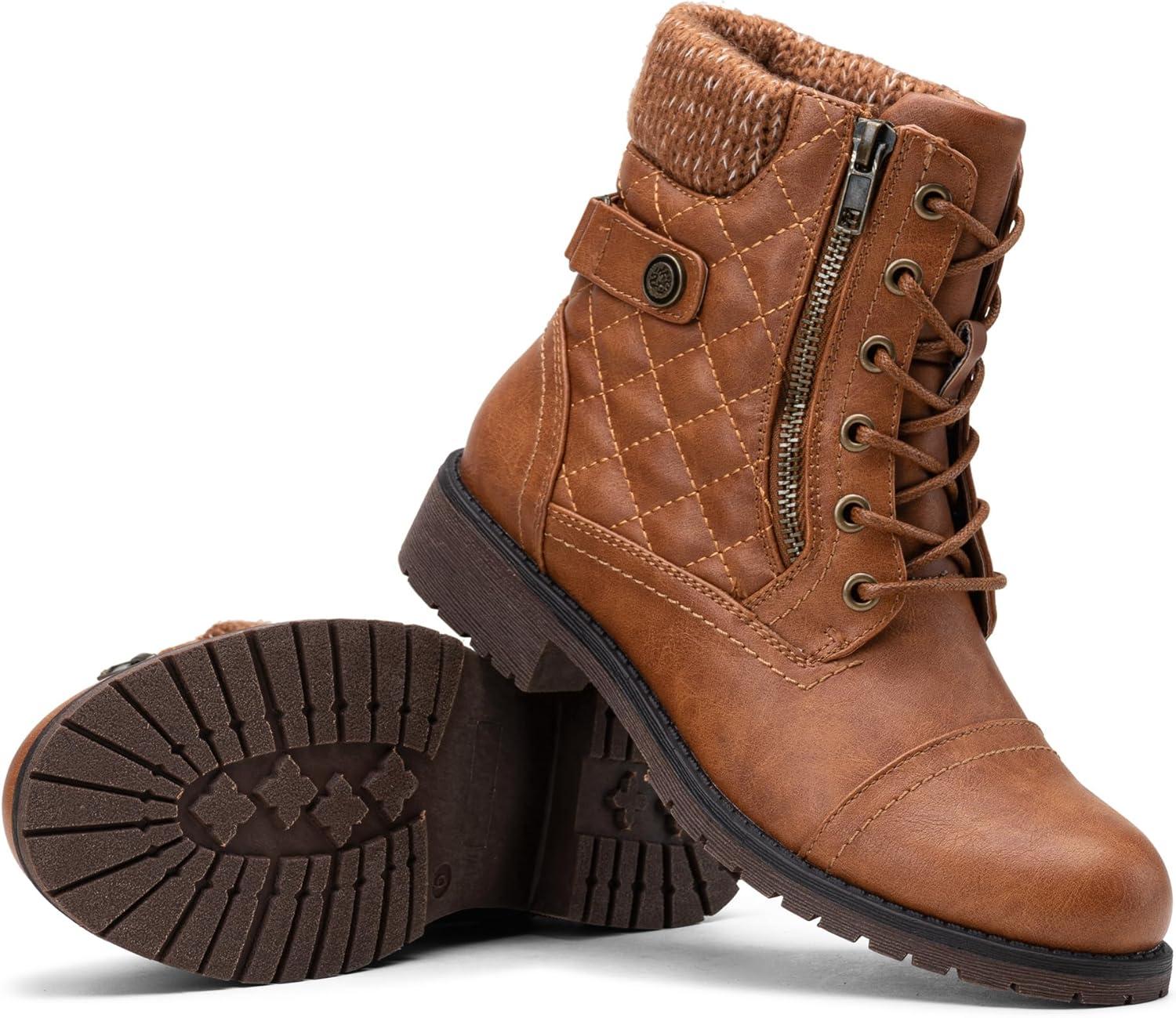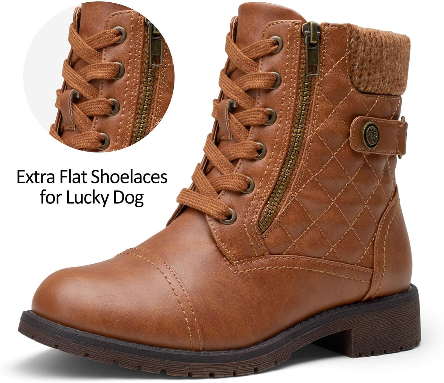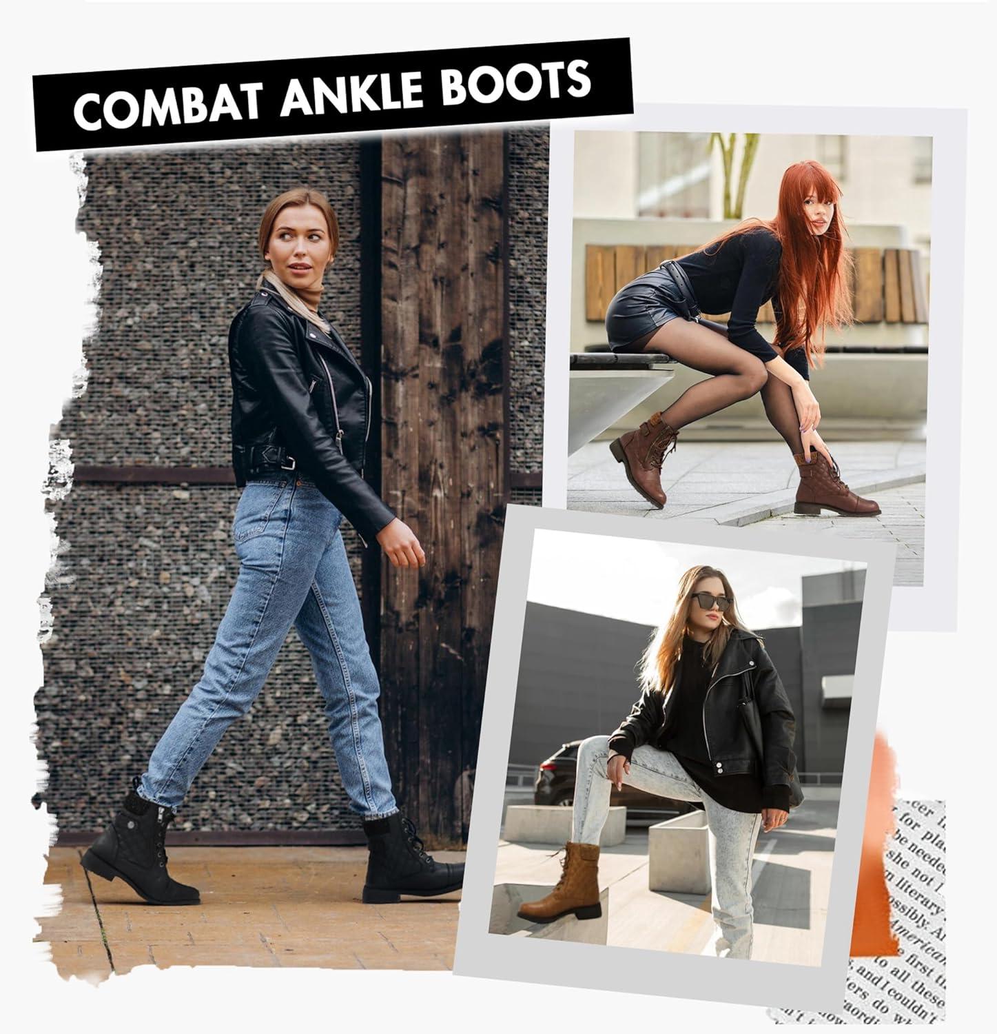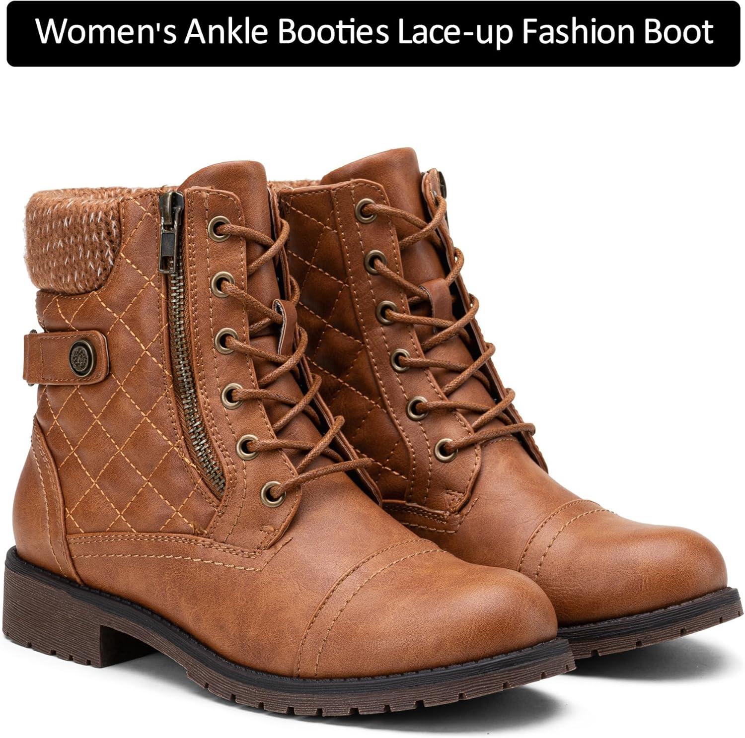 Don’t miss out on our limited-time offer: buy Vepose Women’s Combat Ankle Boots, Lace up Comfortable Booties Low Heel(Brown Knitting-927), get {accessory} 50% off!