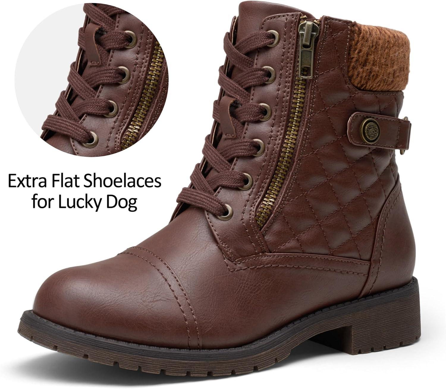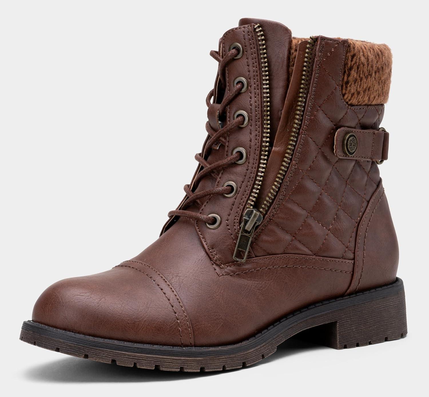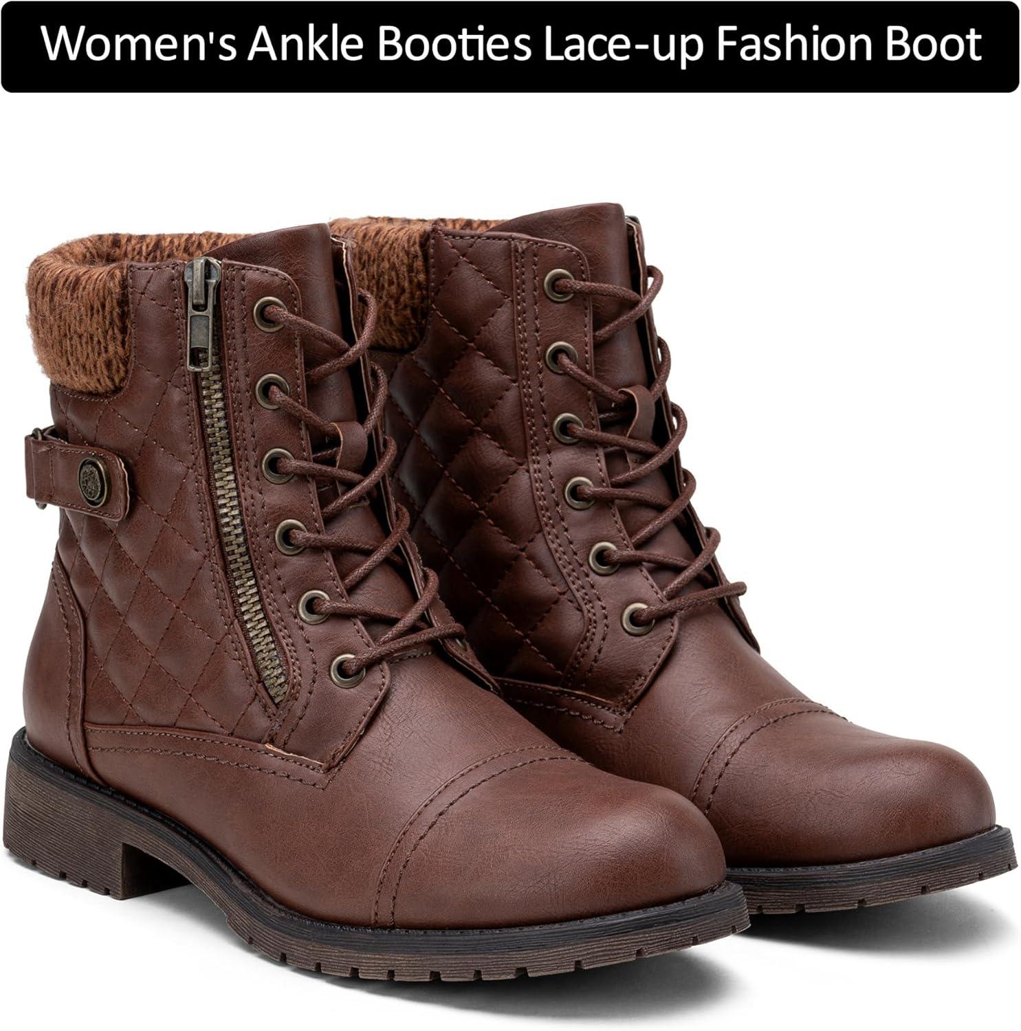 Vepose Women’s Combat Ankle Boots, Lace up Comfortable Booties Low Heel(Brown Knitting-927)