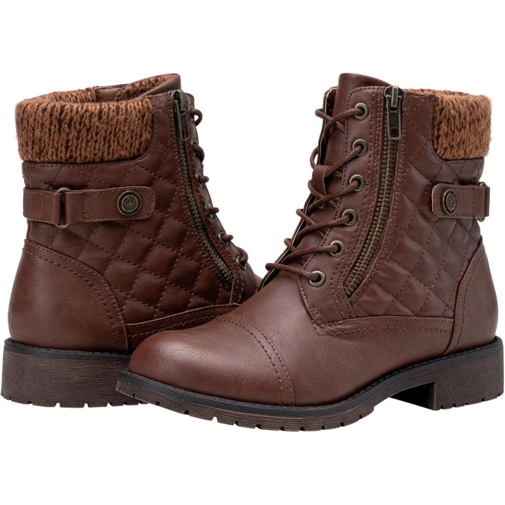 imageVepose Womens Combat Ankle Boots Lace up Comfortable Booties Low HeelCognac Knitting927