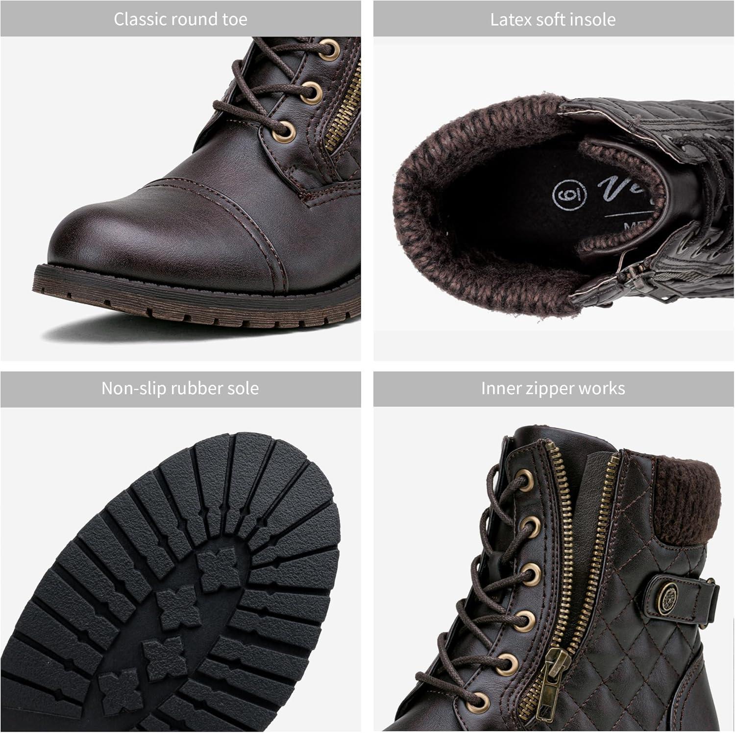 Vepose Women’s Combat Ankle Boots, Lace up Comfortable Booties Low Heel(Dark Tan Knitting-927)