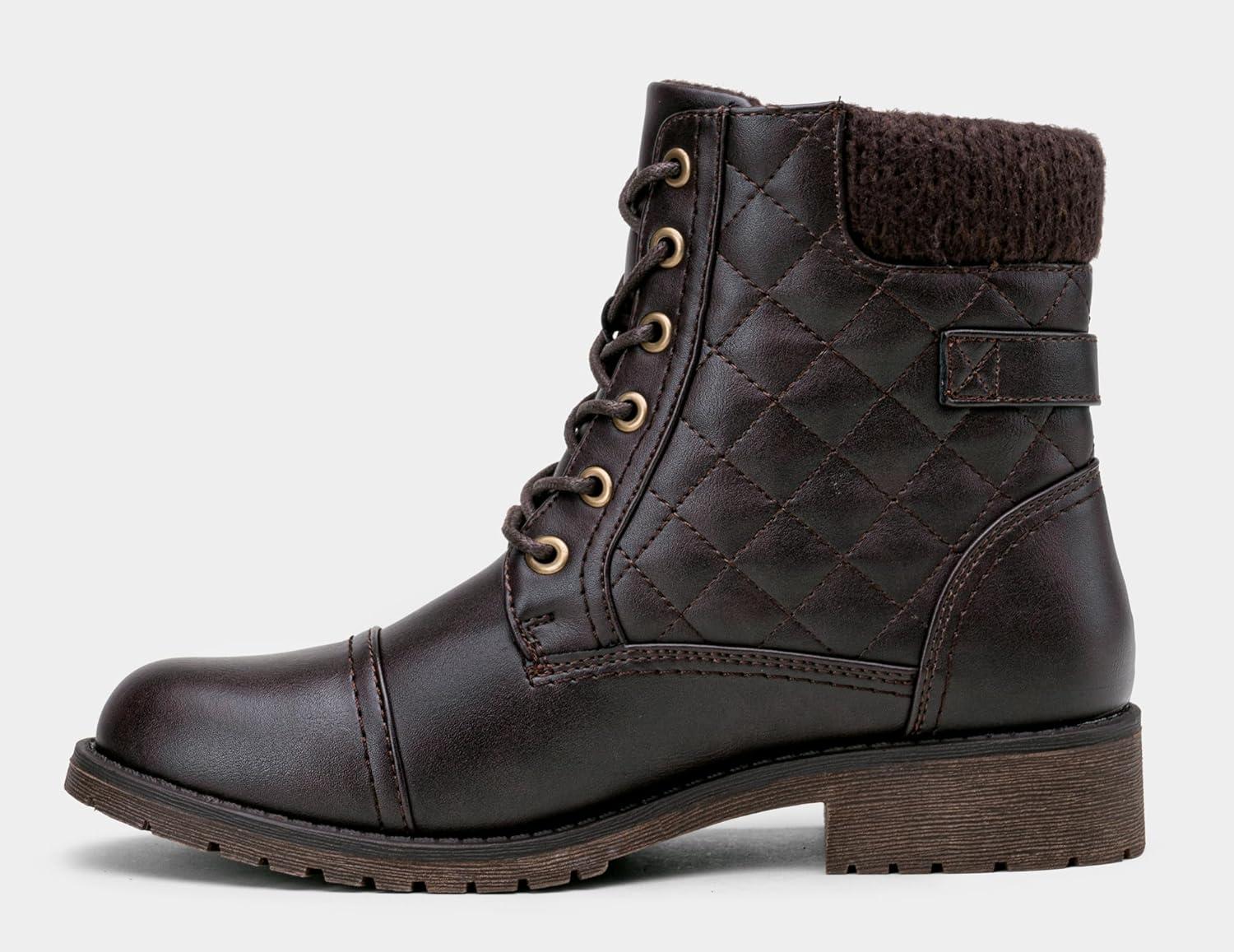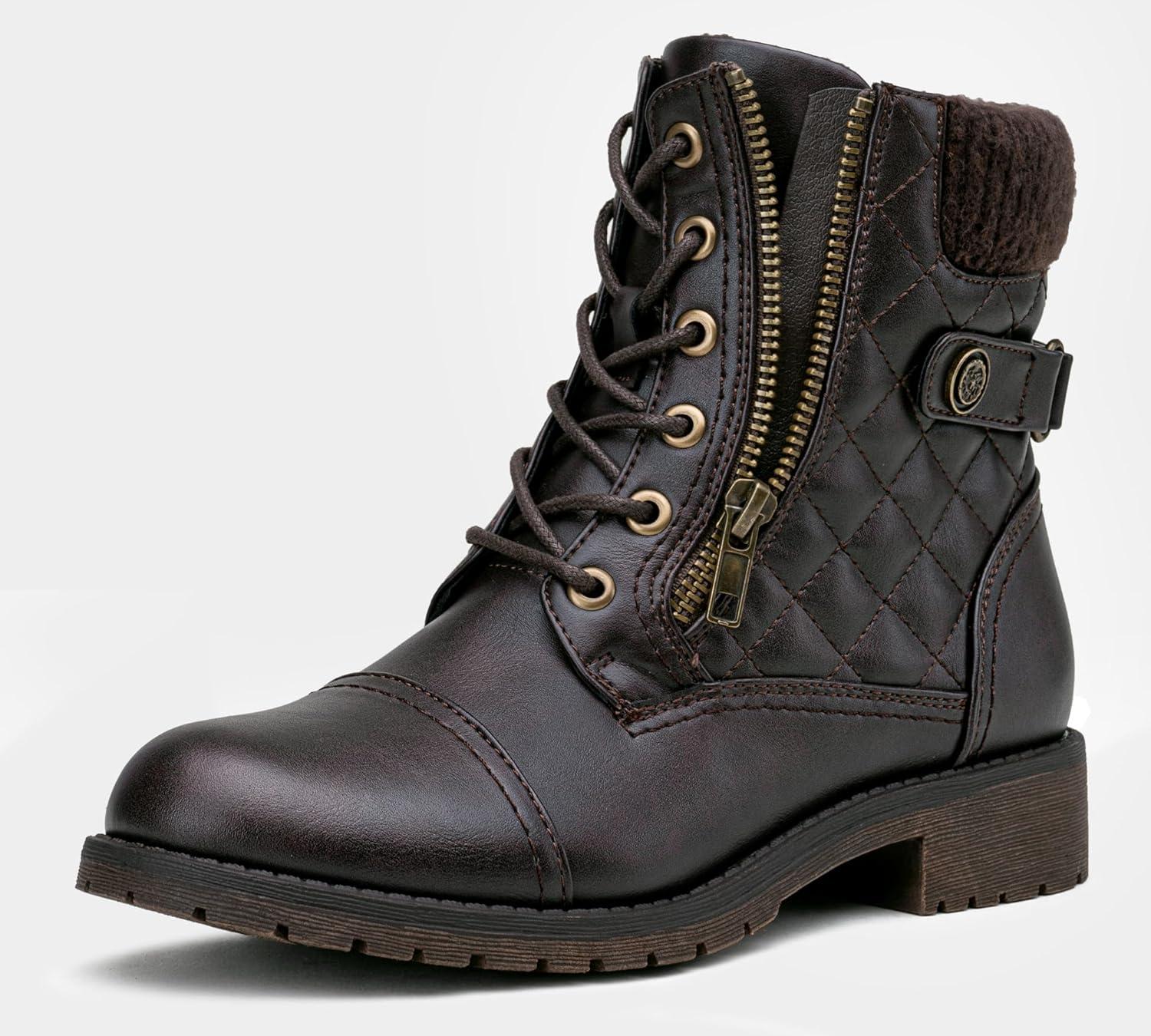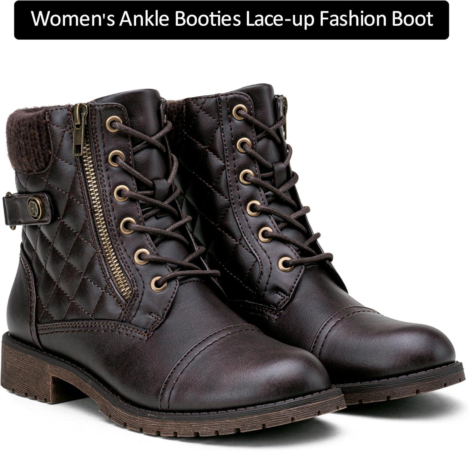 imageVepose Womens Combat Ankle Boots Lace up Comfortable Booties Low HeelDark Tan Knitting927