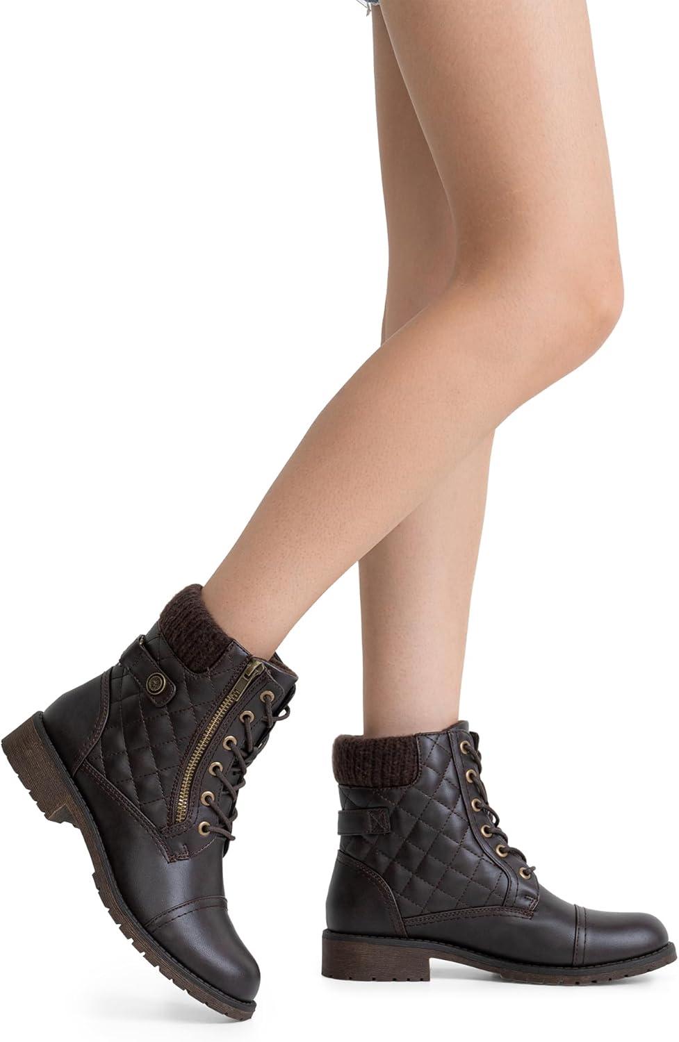 Vepose Women's Combat Ankle Boots, Lace up Comfortable Booties Low Heel(Dark Tan Knitting-927)