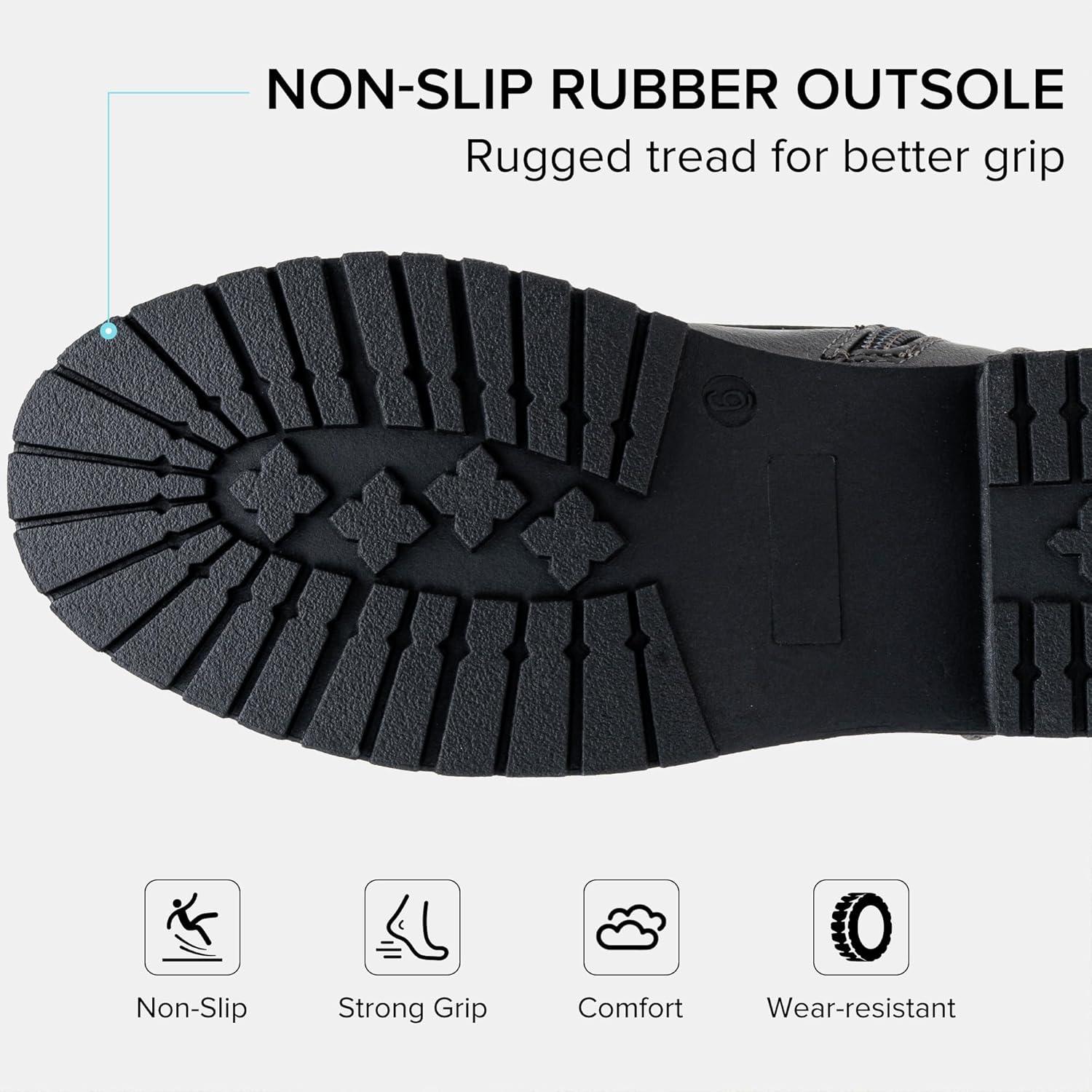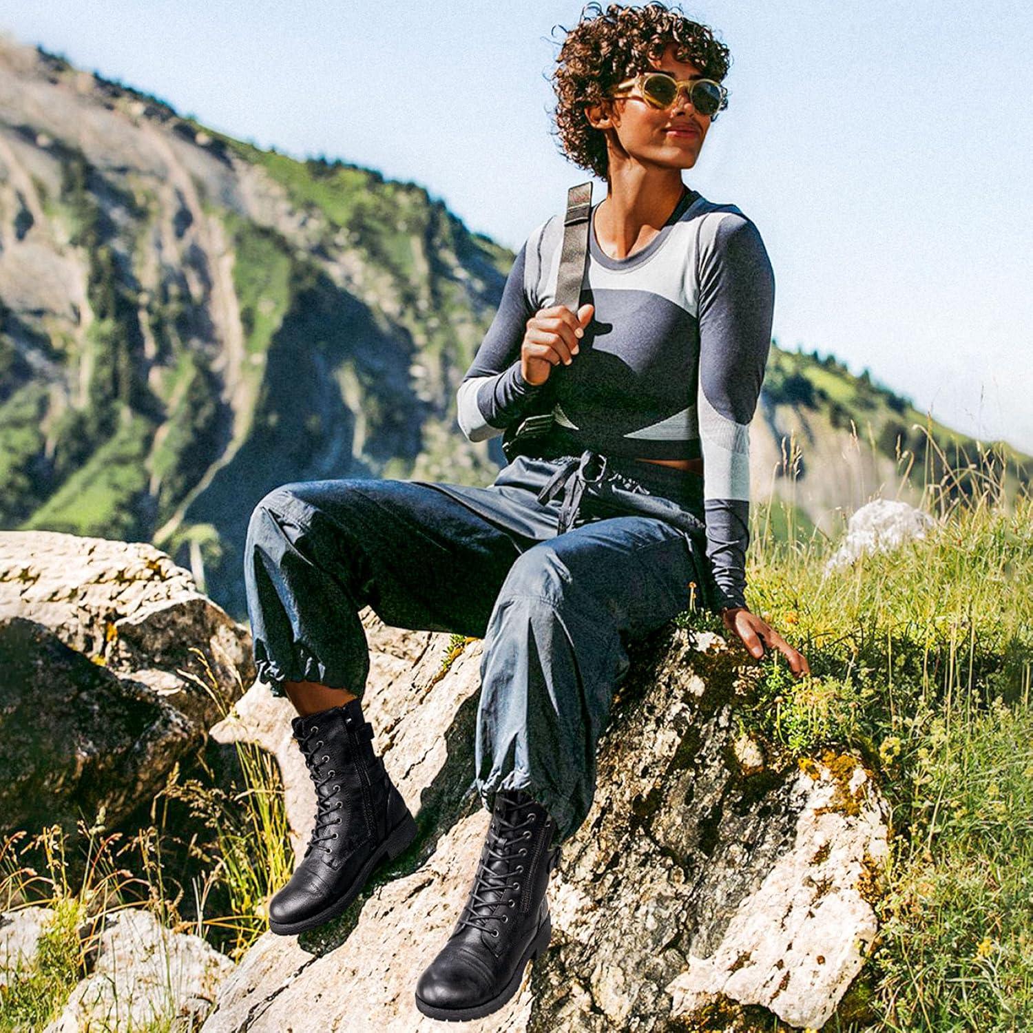 imageVepose Womens Combat Boots Low Heel Mid Calf Military Boots with Card Knife Wallet PocketAmilitaryblack