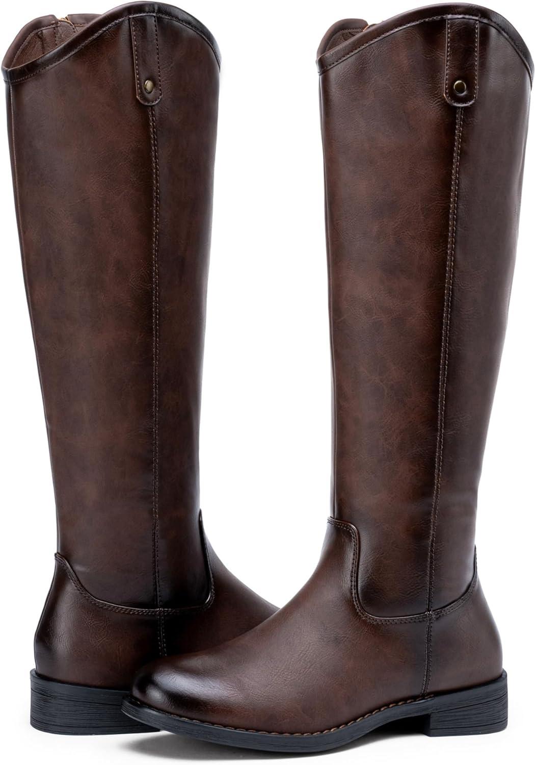 Vepose Women’s Knee High Boots 956 Wide Calf Zipper Tall Fashion Boots(Brown Pu)