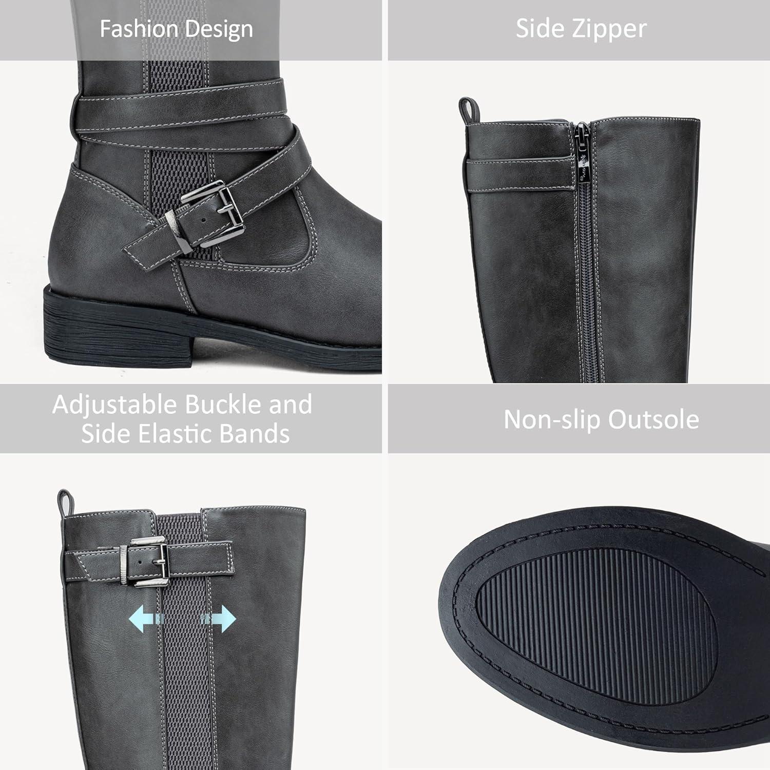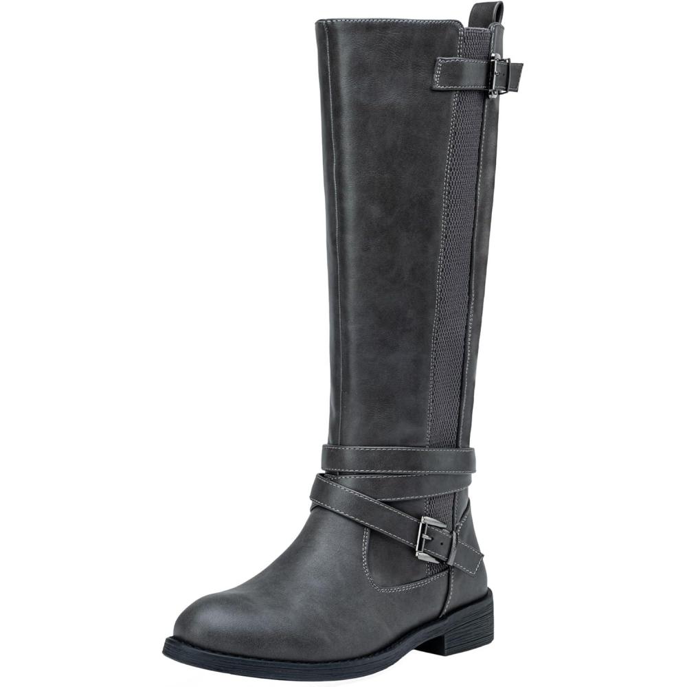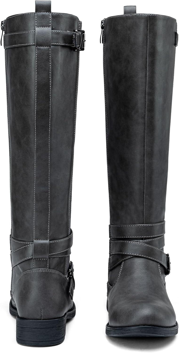 Vepose Women’s Riding Knee High Boots Calf Tall Stretch Retro Low Heel 952 Boots with Zipper(Grey-riding 952)