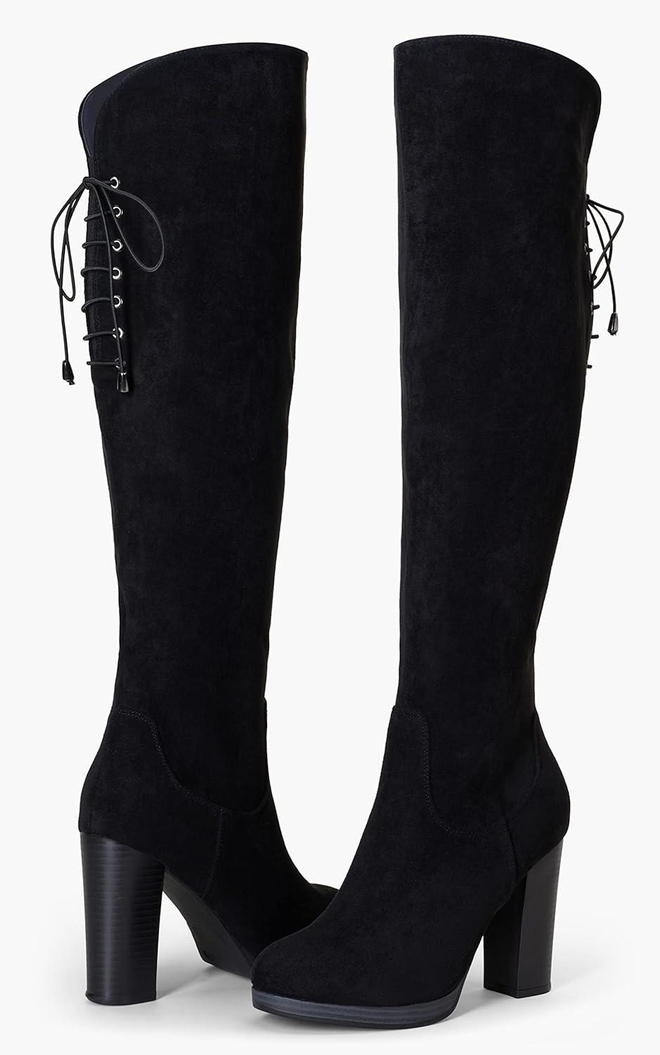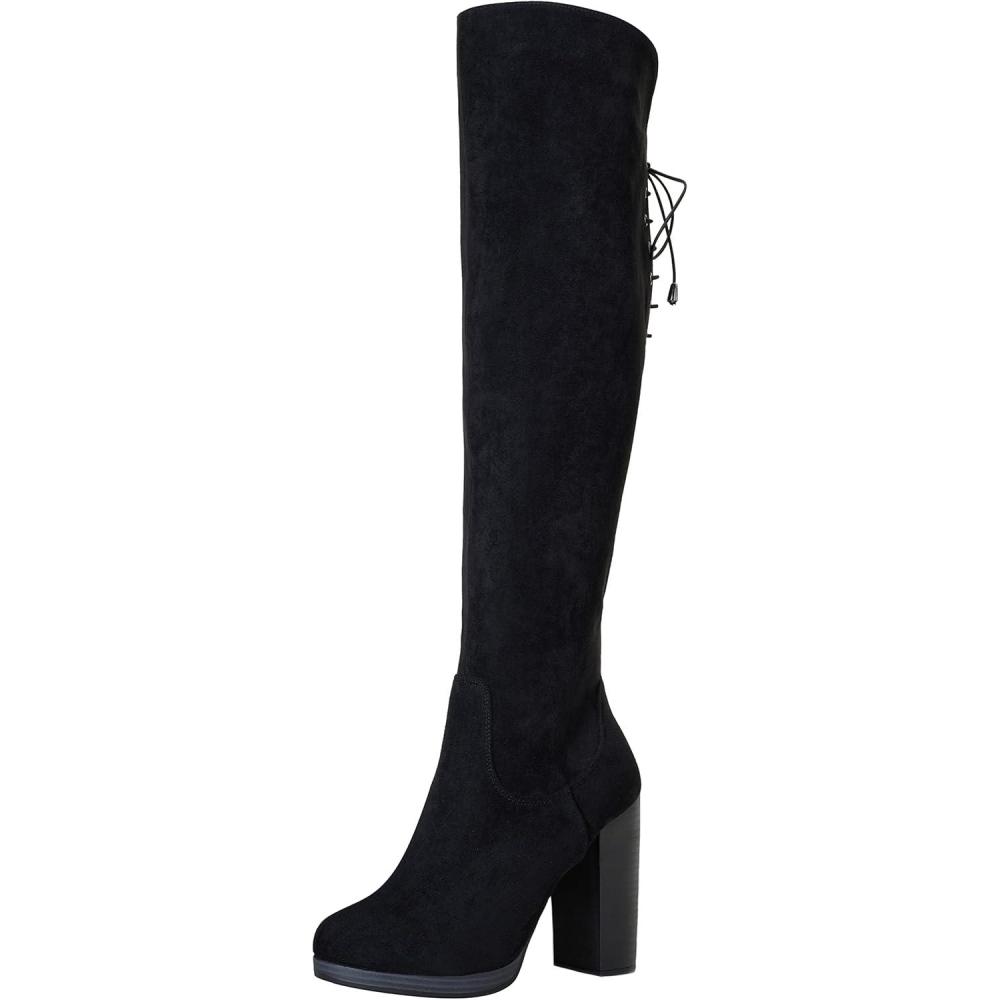 imageVepose Womens Thigh High Black Over The Knee Boots Tall Suede Knee High 996 BootBlackimitation Grain997