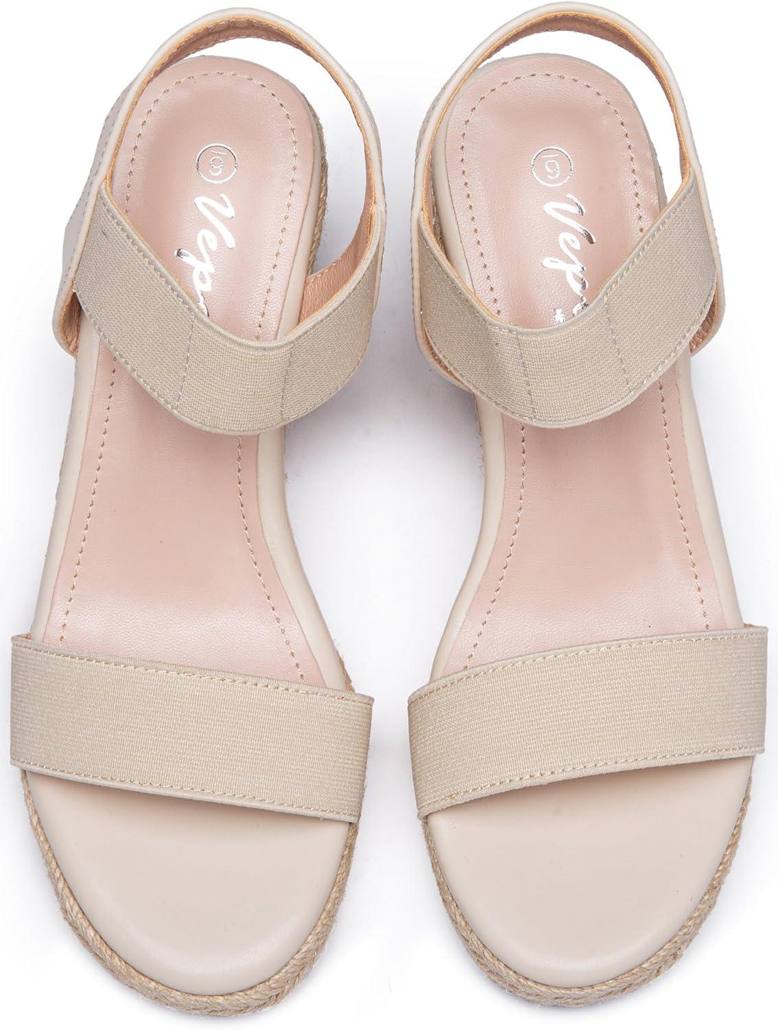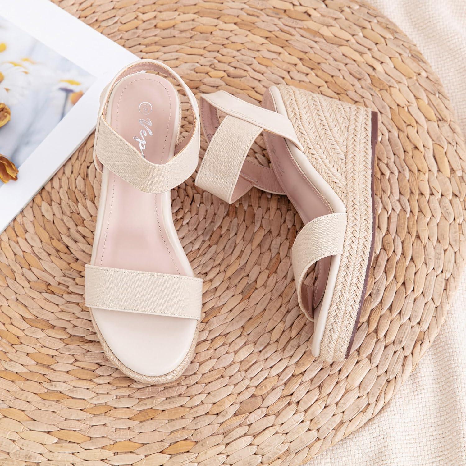 Vepose Women’s Wedge Sandals Platform Espadrilles Sandals Elasitc Ankle Strap Open Toe 881 Sandals with 3.5″ Inchs High Heel Summer Shoes(Nudepu)