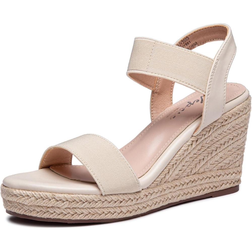 Vepose Women's Wedge Sandals Platform Espadrilles Sandals Elasitc Ankle Strap Open Toe 881 Sandals with 3.5" Inchs High Heel Summer Shoes(Nude)